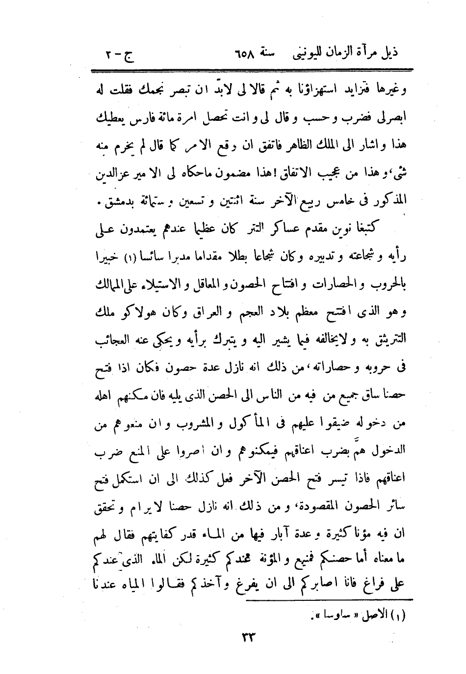 كتبغا نوين مقدم عساكر التتر كان عظيماً عندهم يعتمدون على رأيه وشجاعته وتدبيره وكان شجاعاً بطلاً مقداماً مدبراً سائساً خبيراً بالحروب والحصارات وافتتاح الحصون والمعاقل والاستيلاء على الممالك وهو الذي افتتح معظم بلاد العجم والعراق وكان هولاكو ملك التتر يثق به ولا يخالفه فيما يشير إليه ويتبرك برأيه ويحكي عنه العجائب في حروبه وحصاراته من ذلك أنه نازل عدة حصون فكان إذا فتح حصنا ساق جميع من فيه من الناس إلى الحصن الذي يليه فإن مكنهم أهله من دخوله ضيقوا عليهم في المأكول والمشروب وإن منعوهم من الدخول هم بضرب أعناقهم فيمكنوهم وإن أصروا على المنع ضرب أعناقهم فإذا تيسر فتح الحصن الآخر فعل كذلك إلى أن استكمل فتح سائر الحصون المقصودة، ومن ذلك أنه نازل حصناً لا يرام وتحقق أن فيه مؤناً كثيرة وعدة آبار فيها من الماء قدر كفايتهم فقال لهم ما معناه أما حصنكم فمنيع والمؤنة عندكم كثيرة لكن الماء الذي عندكم على فراغ فإنا أصابركم إلى أن يفرغ وآخذكم فقالوا المياه عندنا