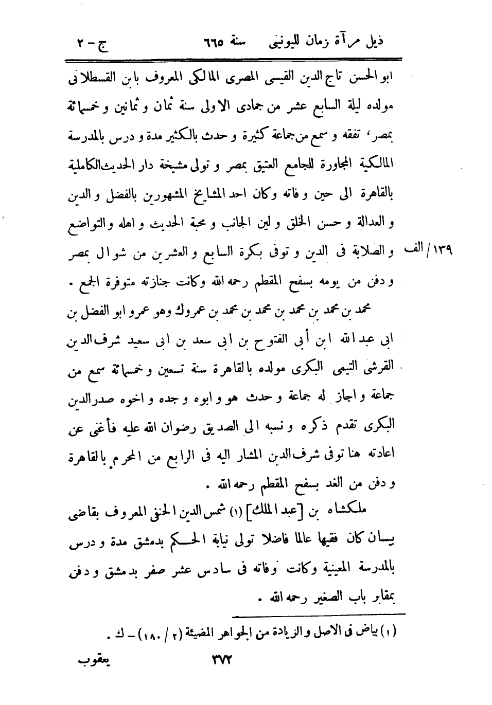 ملكشاه بن عبد الملك شمس الدين الحنفي المعروف بقاضي بيسان كان فقيهاً عالماً فاضلاً تولى نيابة الحكم بدمشق مدة ودرس بالمدرسة المعينية وكانت وفاته في سادس عشر صفر بدمشق ودفن بمقابر باب الصغير رحمه الله.