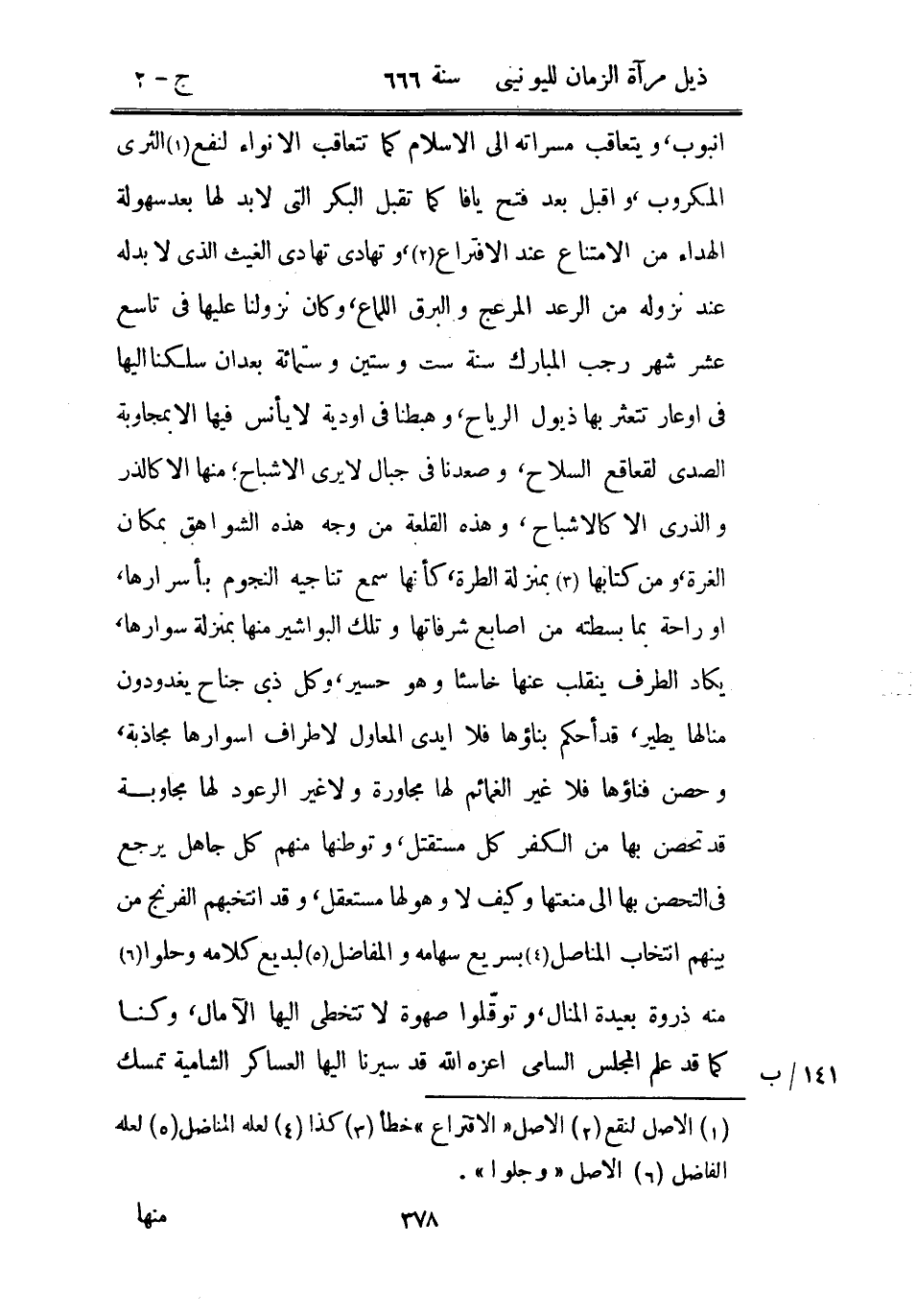 أنبوب، ويتعاقب مسراته إلى الإسلام كما تتعاقب الأنواء لنفع الثرى المكروب، وأقبل بعد فتح يافا كما تقبل البكر التي لا بد لها بعد سهولة الهداء من الامتناع عند الافتراع وتهادى تهادي الغيث الذي لا بد له عند نزوله من الرعد المرعج والبرق اللماع، كان نزولنا عليها في تاسع عشر شهر رجب المبارك سنة ست وستين وستمائة بعد أن سلكنا إليها في أوعار تتعثر بها ذيول الرياح، وهبطنا في أودية لا يأنس فيها إلا بمجاوبة الصدى لقعاقع السلاح، وصعدنا في جبال لا يرى الأشباح، منها إلا كالذر والذري إلا كالأشباح، وهذه القلعة من وجه هذه الشواهق بمكان الغرة، ومن كتابها بمنزلة الطرة، كأنها سمع تناجيه النجوم بأسرارها، أو راحة بما بسطته من أصابع شرفاتها وتلك البواشير منها بمنزلة سوارها، يكاد الطرف ينقلب عنها خاسئاً وهو حسير، وكل ذي جناح يغدو دون منالها يطير، قد أحكم بناؤها فلا أيدي المعاول لأطراف أسوارها مجاذبة، وحصن فناؤها فلا غير الغمائم لها مجاورة ولا غير الرعود لها مجاوبة قد تحصن بها من الكفر كل مستقتل، وتوطنها منهم كل جاهل يرجع في التحصن بها إلى منعتها وكيف لا وهو لها مستعمل، وقد انتخبهم الفرنج من بينهم انتخاب المناصل بسريع سهامه والمفاضل لبديع كلامه وحلوا منه ذروة بعيدة المنال، وتوقلوا صهوة لا تتخطى إليها الآمال، وكنا كما قد علم المجلس السامي أعزه الله قد سيرنا إليها العساكر الشامية تمسك