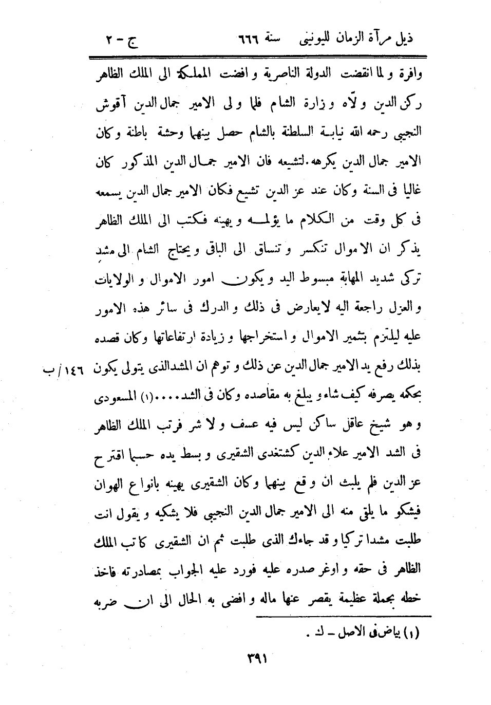 وافرة ولما انقضت الدولة الناصرية وأفضت المملكة إلى الملك الظاهر ركن الدين ولاه وزارة الشام فلما ولي الأمير جمال الدين آقوش النجيبي رحمه الله نيابة السلطنة بالشام حصل بينهما وحشة باطنة وكان الأمير جمال الدين يكرهه. لتشيعه فإن الأمير جمال الدين المذكور كان غالباً في السنة وكان عند عز الدين تشيع فكان الأمير جمال الدين يسمعه في كل وقت من الكلام ما يؤلمه ويهينه فكتب إلى الملك الظاهر يذكر أن الأموال تنكسر وتنساق إلى الباقي ويحتاج الشام إلى مشد تركي شديد المهابة مبسوط اليد ويكون أمور الأموال والولايات والعزل راجعة إليه لا يعارض في ذلك والدرك في سائر هذه الأمور عليه ليلتزم بتثمير الأموال واستخراجها وزيادة ارتفاعاتها وكان قصده بذلك رفع يد الأمير جمال الدين عن ذلك وتوهم أن المشد الذي يتولى يكون بحكمه يصرفه كيف شاء ويبلغ به مقاصده وكان في الشد ... المسعودي وهو شيخ عاقل ساكن ليس فيه عسف ولا شر فرتب الملك الظاهر في الشد الأمير علاء الدين كشتغدي الشقيري وبسط يده حسبما اقترح عز الدين فلم يلبث أن وقع بينهما وكان الشقيري يهينه بأنواع الهوان فيشكو ما يلقى منه إلى الأمير جمال الدين النجيبي فلا يشكيه ويقول أنت طلبت مشداً تركياً وقد جاءك الذي طلبت ثم أن الشسقيري كاتب الملك الظاهر في حقه وأوغر صدره عليه فورد عليه الجواب بمصادرته فأخذ خطه بحملة عظيمة يقصر عنها ماله وأفضى به الحال إلى أن ضربه