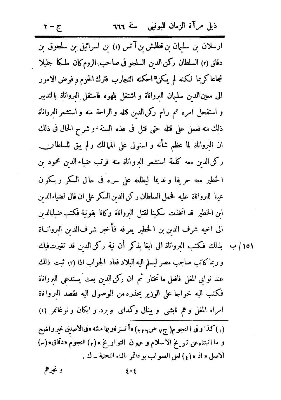 أرسلان بن سليمان بن قطلمش بن آتس بن إسرائيل بن سلجوق بن دقاق السلطان ركن الدين السلجوقي صاحب الروم كان ملكاً جليلاً شجاعاً كريماً لكنه لم يكن أحكمته التجارب فترك الحزم وفوض الأمور إلى معين الدين سليمان البرواناة واشتغل بلهوه فاستقل البرواناة بالتدبير واستفحل أمره ثم رام ركن الدين قتله والراحة منه واستشعر البرواناة ذلك منه فعمل على قتله حتى قتل في هذه السنة، وشرح الحال في ذلك إن البرواناة لما عظم شأنه واستولى على الممالك ولم يبق للسلطان ركن الدين معه كلمة استشعر البرواناة منه فرتب ضياء الدين محمود بن الخطير معه حريفاً ونديماً ليطلعه على سره في حال السكر ويكون عيناً للبرواناة عليه فحمل السلطان ركن الدين السكر على أن قال لضياء الدين ابن الخطير قد اتخذت سكيناً لقتل البرواناة وكانا بقونية فكتب ضياء الدين إلى أخيه شرف الدين بن الخطير يعرفه فأخبر شرف الدين البرواناة بذلك فكتب البرواناة إلى أبغا يذكر أن نية ركن الدين قد تغيرت فيك وربما كاتب صاحب مصر ليسلم إليه البلاد فعاد الجواب إذا ثبت ذلك عند نوابي المغل فافعل ما تختار ثم إن ركن الدين بعث يستدعي البرواناة فكتب إليه خواجا على الوزير يحذره من الوصول إليه فقصد البرواناة أمراء المغل وهم نابشي ويينال وكداي وبرد وأبكان ونوغاتمر