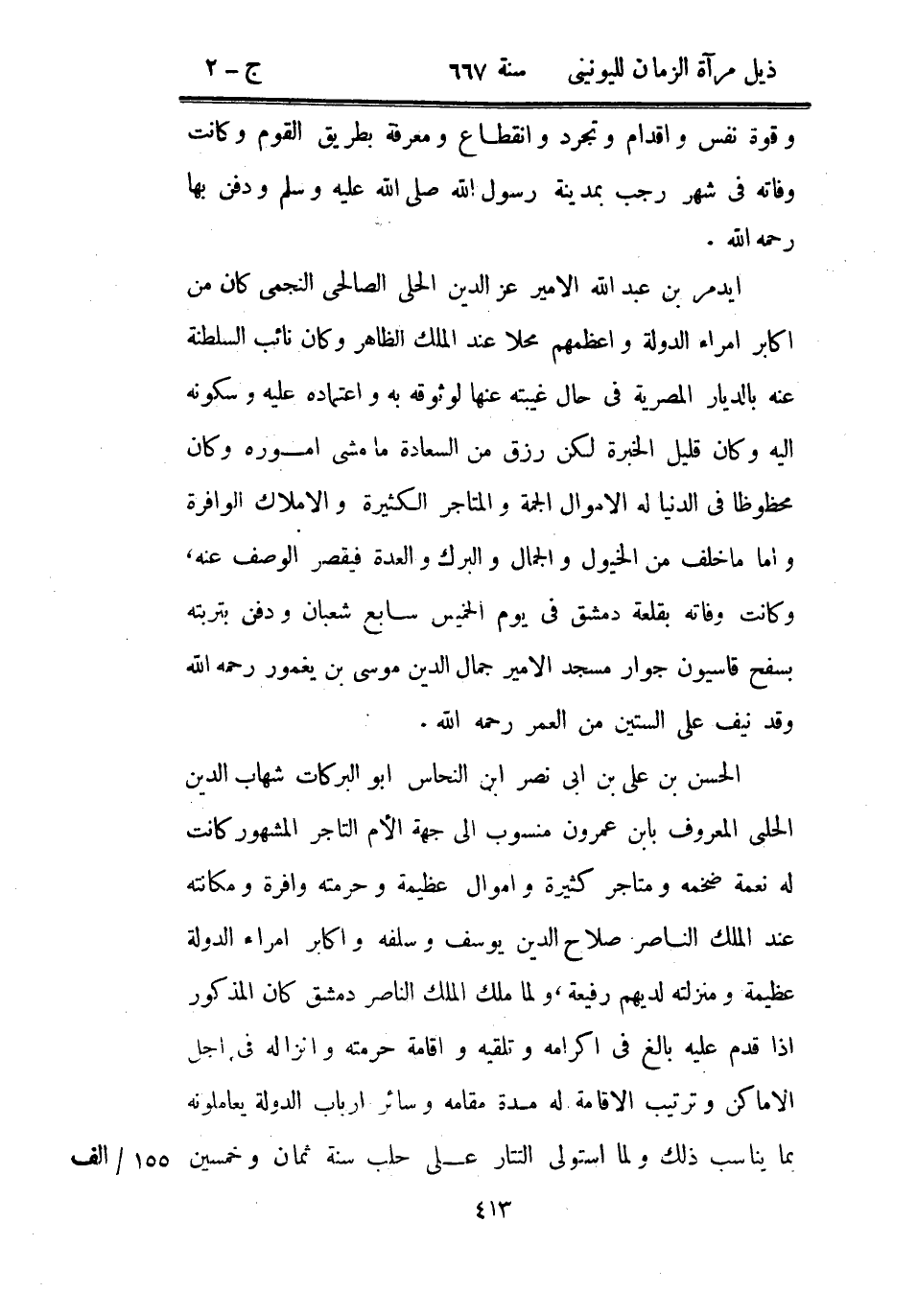 إيدمر بن عبد الله الأمير عز الدين الحلي الصالحي النجمي كان من أكابر أمراء الدولة وأعظمهم محلاً عند الملك الظاهر وكان نائب السلطنة عنه بالديار المصرية في حال غيبته عنها لوثوقه به واعتماده عليه وسكونه إليه وكان قليل الخبرة لكن رزق من السعادة ما مشى أموره وكان محظوظاً في الدينا له الأموال الجمة والمتاجر الكثيرة والأملاك الوافرة وأما ما خلف من الخيول والجمال والبرك والعدة فيقصر الوصف عنه، وكانت وفاته بقلعة دمشق في ويوم الخميس سابع شعبان ودفن بتربته بسفح قاسيون جوار مسجد الأمير جمال الدين موسى بن يغمور رحمه الله وقد نيف على الستين من العمر رحمه الله.
