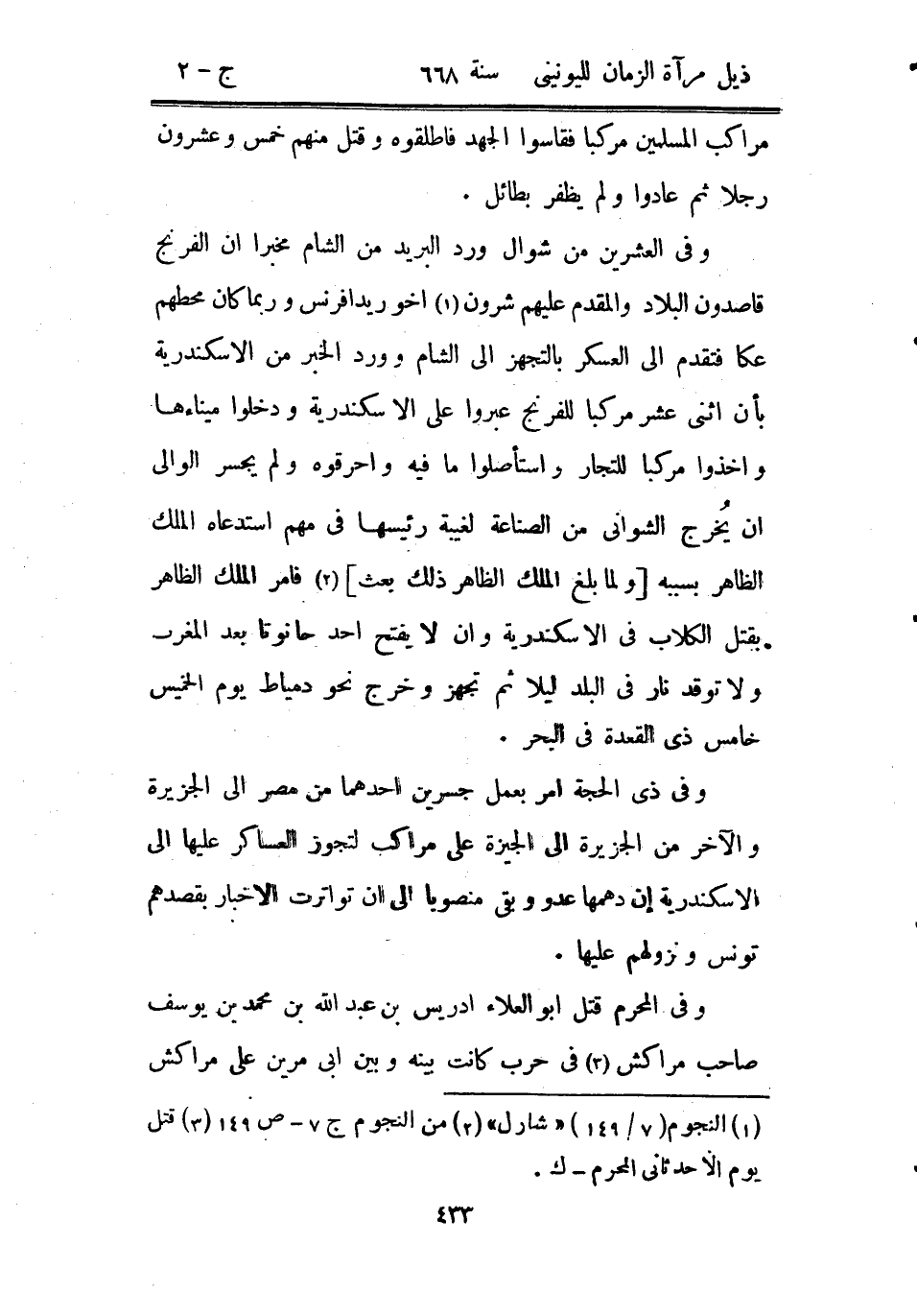 وفي المحرم قتل أبو العلاء إدريس بن عبد الله بن محمد بن يوسف صاحب مراكش في حرب كانت بينه وبين أبي مرين على مراكش