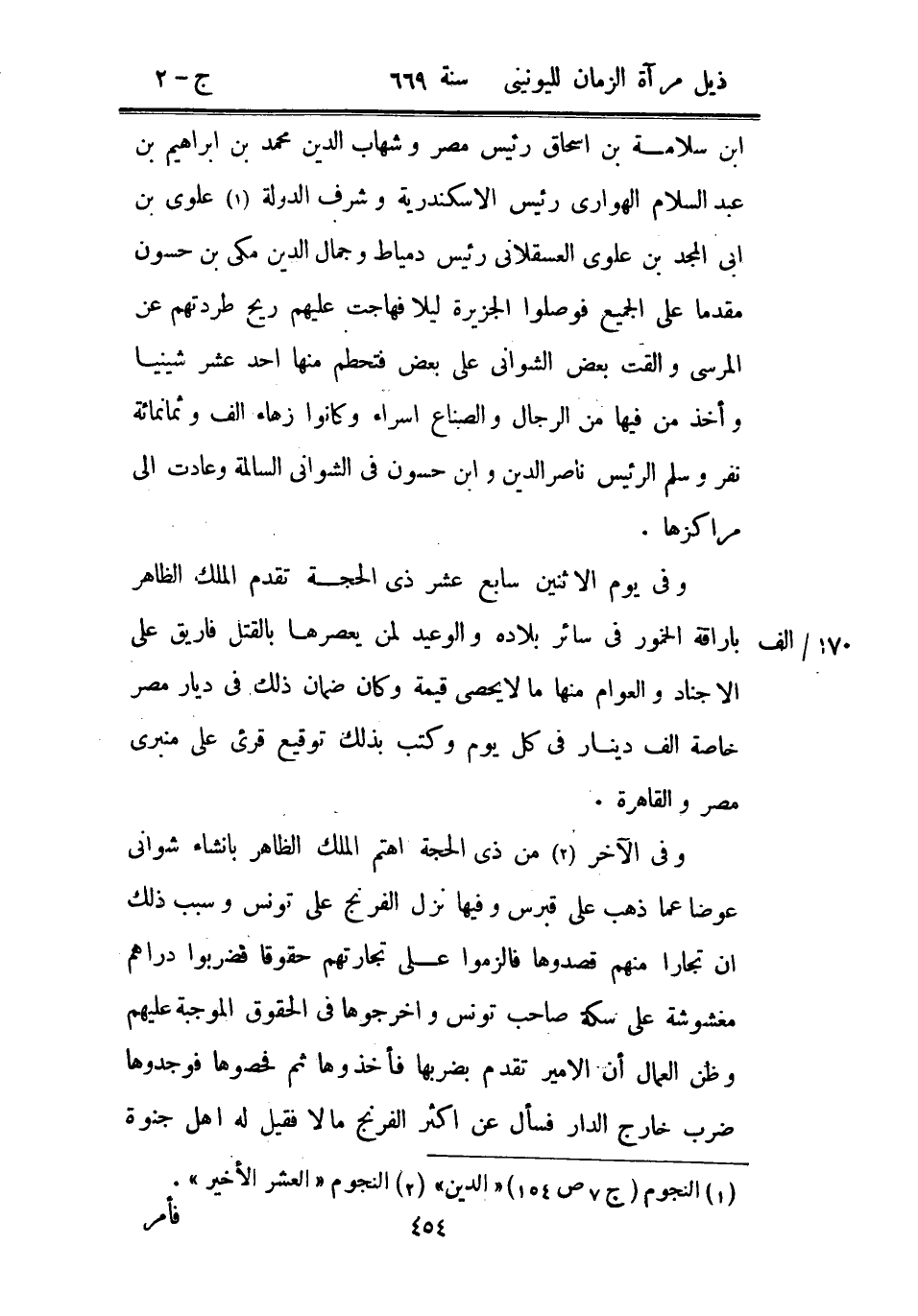 وفي الآخر من ذي الحجة اهتم الملك الظاهر بإنشاء شواني عوضاً عما ذهب على قبرس وفيها نزل الفرنج على تونس وسبب ذلك أن تجاراً منهم قصدوها فألزموا على تجارتهم حقوقاً فضربوا دراهم مغشوشة على سكة صاحب تونس وأخرجوها في الحقوق الموجبة عليهم وظن العمال أن الأمير تقدم بضربها فأخذوها ثم فحصوها فوجدوها ضرب خارج الدار فسأل عن أكثر الفرنج مالاً فقيل له أهل جنوة