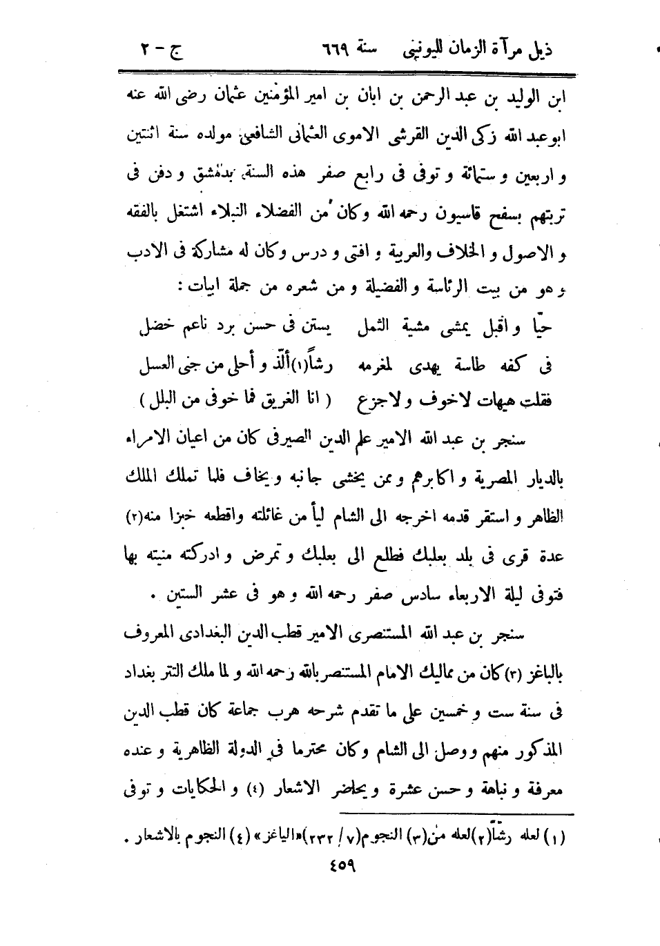 سنجر بن عبد الله المستنصري الأمير قطب الدين البغدادي المعروف بالباغز كان من مماليك الإمام المستنصر بالله رحمه الله ولما ملك التتر بغداد في سنة ست وخمسين على ما تقدم شرحه هرب جماعة كان قطب الدين المذكور منهم ووصل إلى الشام وكان محترماً في الدولة الظاهرية وعنده معرفة ونباهة وحسن عشرة ويحاضر الأشعار والحكايات وتوفي