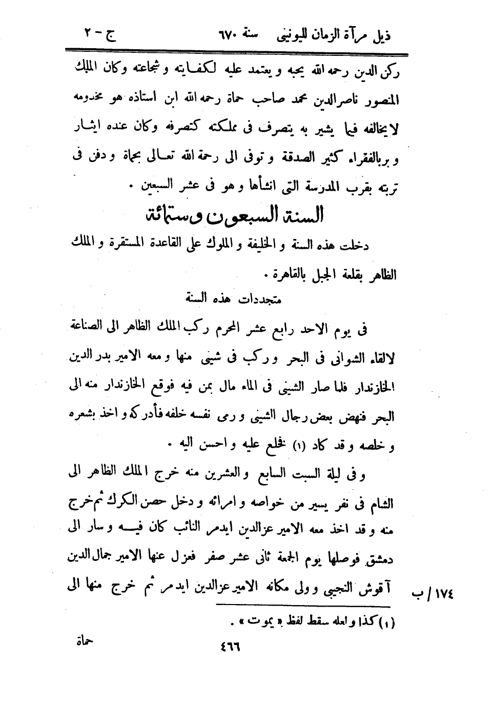 دخلت هذه السنة والخليفة والملوك على القاعدة المستقرة والملك الظاهر بقلعة الجبل بالقاهرة.