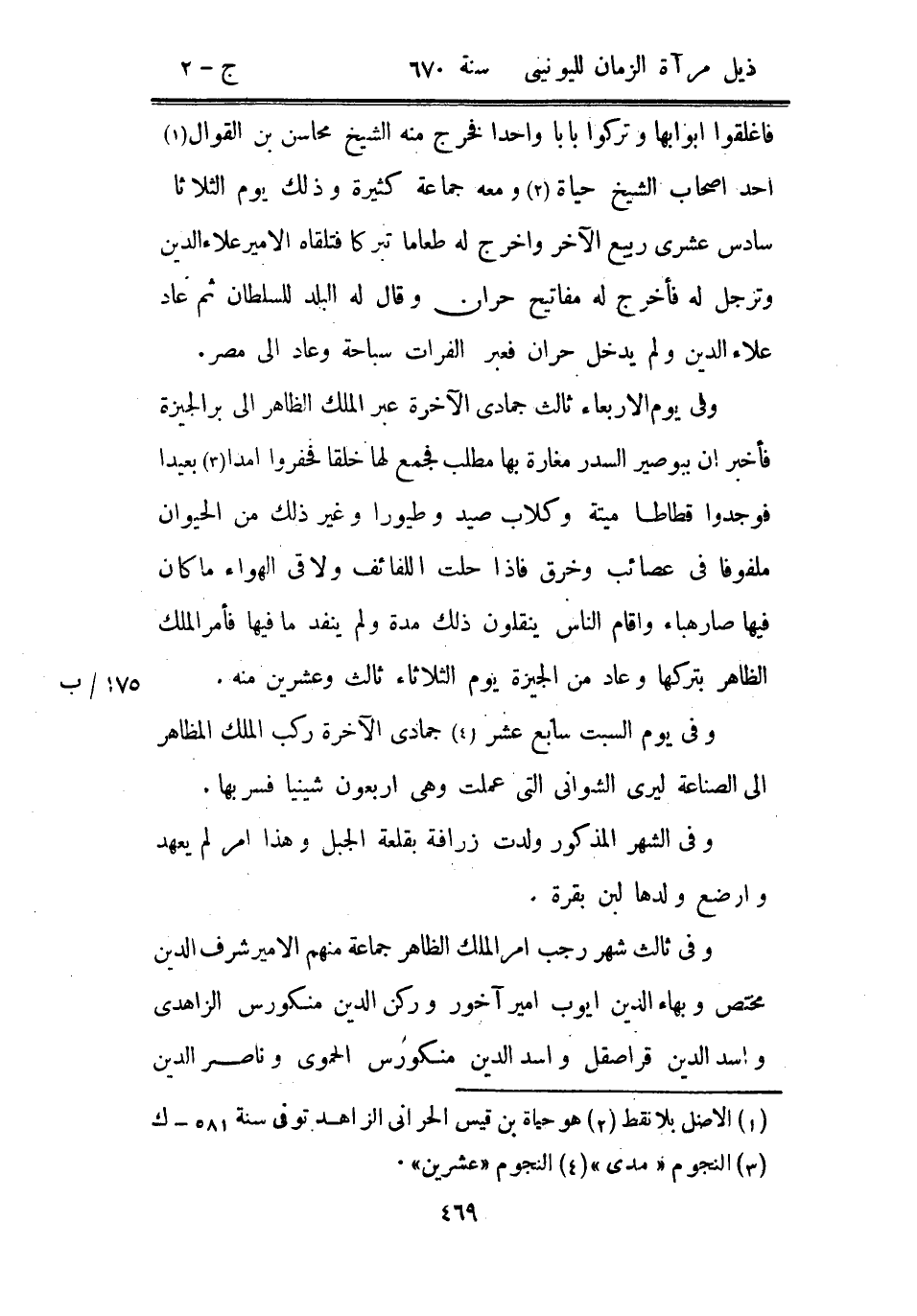 وفي الشهر المذكور ولدت زرافة بقلعة الجبل وهذا أمر لم يعهد وأرضع ولدها لبن بقرة.