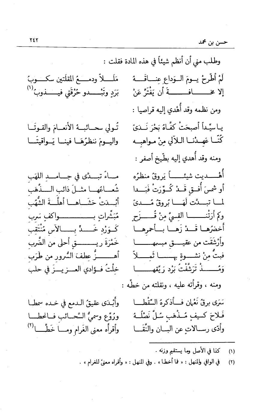 فبتّ من نشوةٍ بها ثملاً ... أهزّ عطف السّرور من طرب