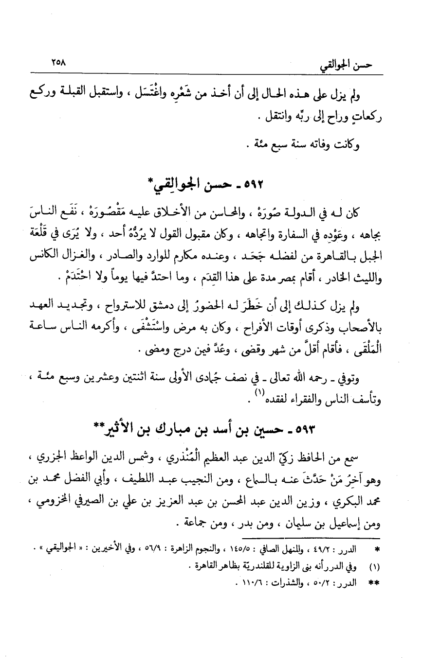 ولم يزل كذلك إلى أن خطر له الحضور إلى دمشق للاسترواح، وتجديد العهد بالأصحاب وذكرى أوقات الأفراح، وكان به مرض واستشفى، وأكرمه الناس ساعة الملقى، فأقام أقل من شهر وقضى، وعد فيمن درج ومضى.