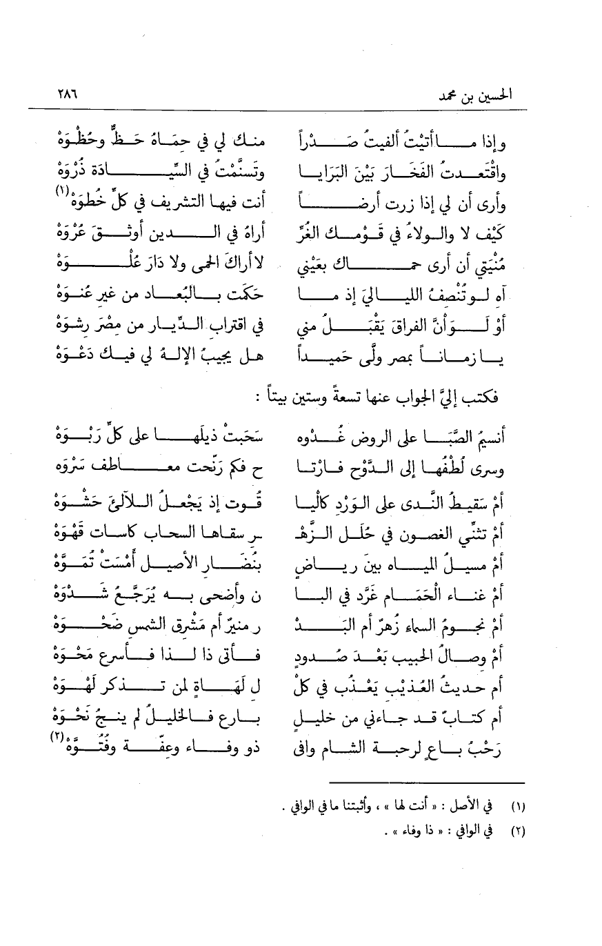 فكتب إلي الجواب عنها تسعةً وستين بيتاً: