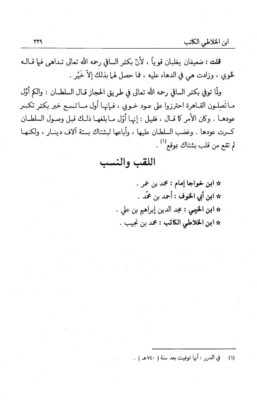 ابن خواجا إمام محمد بن عمر ابن أبي الخوف أحمد بن محمد ابن الخيمي مجد الدين إبراهيم بن علي ابن الخلاطي الكاتب محمد بن نجيب