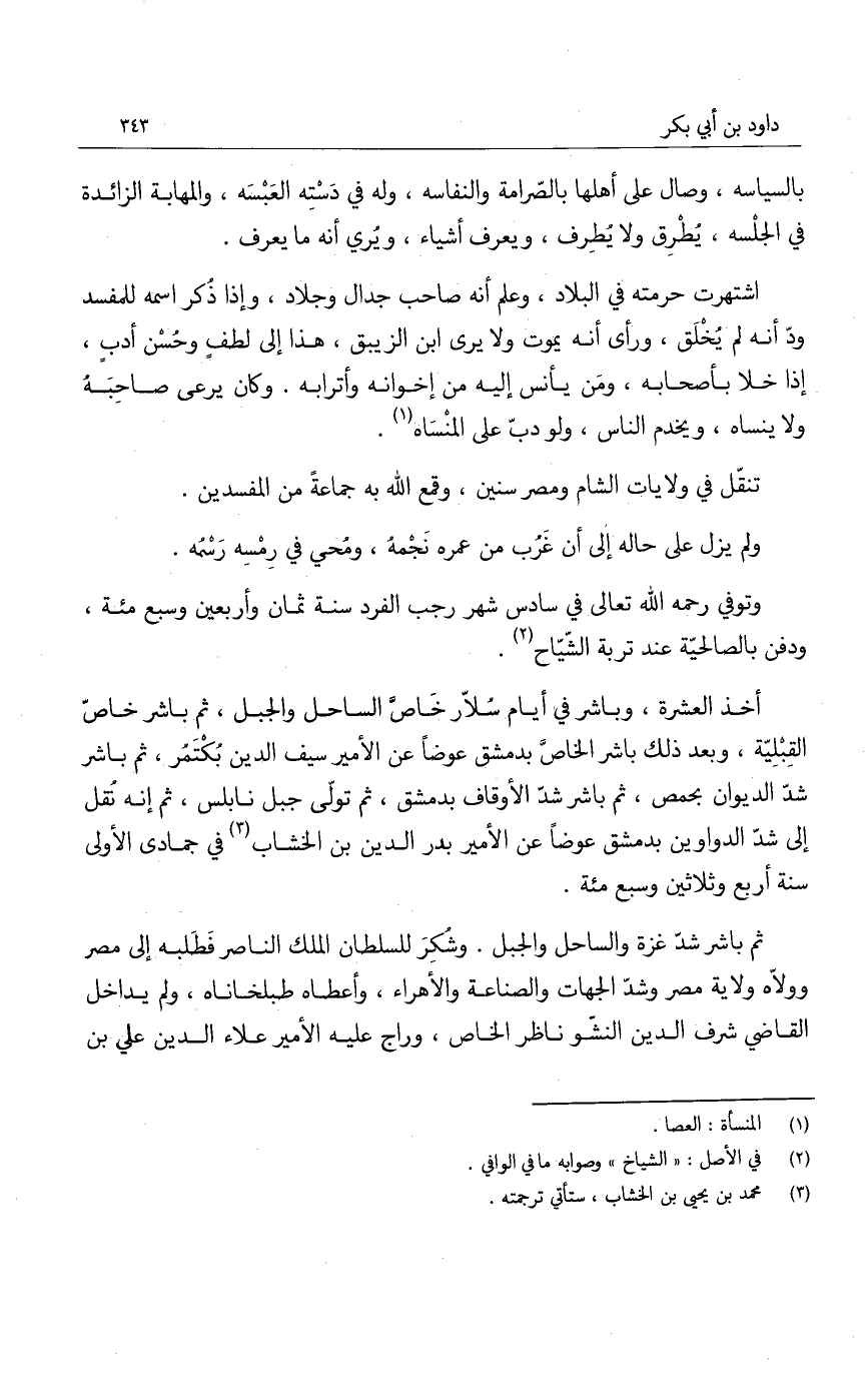 بالسياسه، وصال على أهلها بالصرامة والنفاسه، وله في دسته العبسه، والمهابة الزائدة في الجلسه، يطرق ولا يطرف، ويعرف أشياء، ويري أنه ما يعرف.