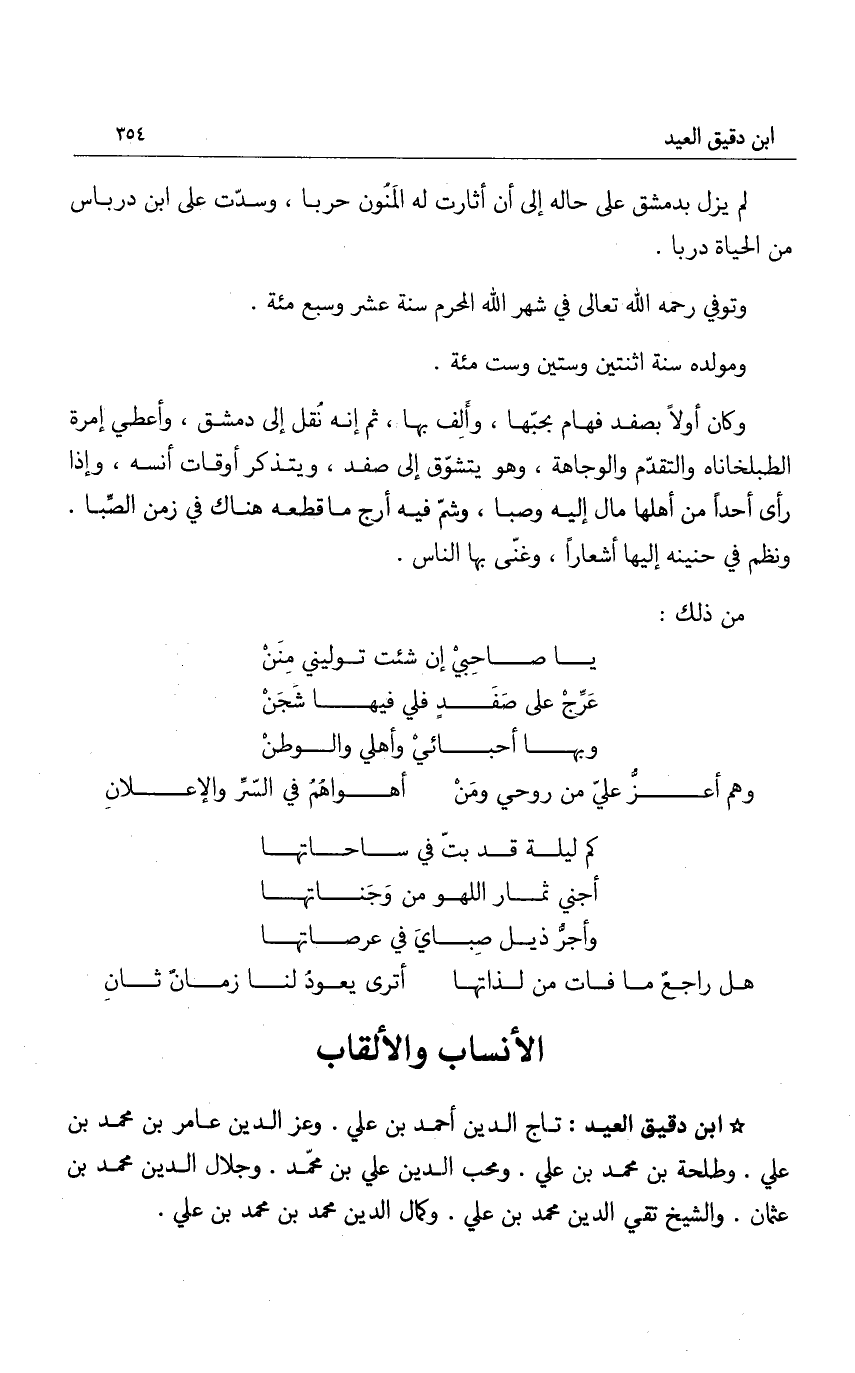 ابن دقيق العيد: تاج الدين أحمد بن علي. وعز الدين عامر بن محمد بن علي. وطلحة بن محمد بن علي. ومحب الدين علي بن محمد. وجلال الدين محمد بن عثمان. والشيخ تقي الدين محمد بن علي. وكمال الدين محمد بن محمد بن علي.