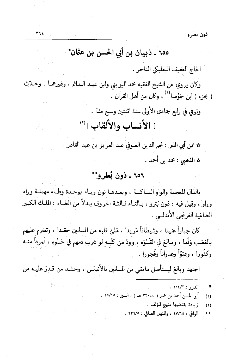 بالذال المعجمة والواو الساكنة، وبعدها نون وباء موحدة وطاء مهملة وراء وواو، وقيل فيه: ذون بترو، بالتاء ثالثة الحروف بدلاً من الطاء: الملك الكبير الطاغية الفرنجي الأندلسي.