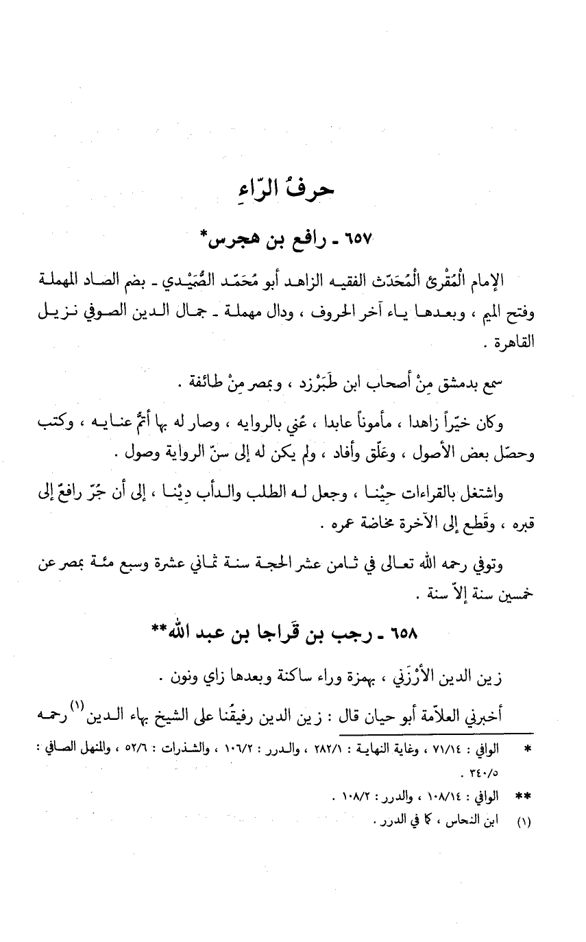 واشتغل بالقراءات حينا، وجعل له الطلب والدأب دينا، إلى أن جر رافع إلى قبره، وقطع إلى الآخرة مخاضة عمره.