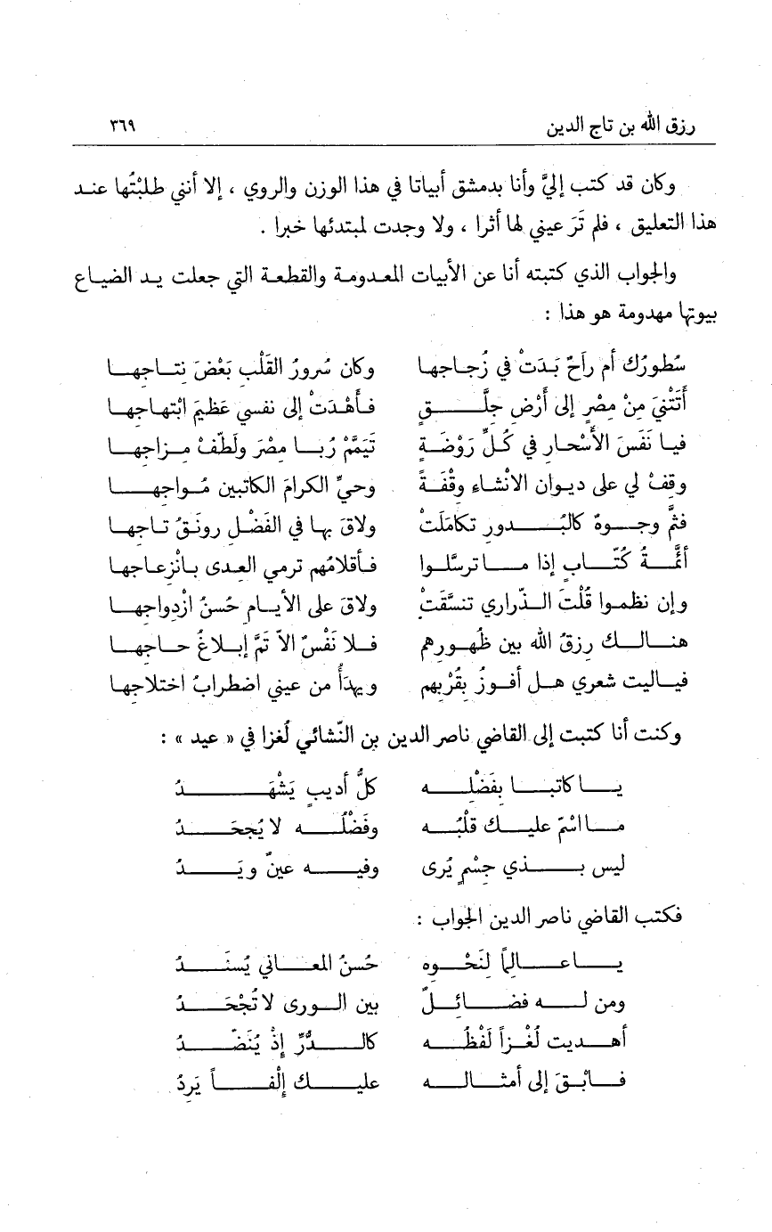 فكتب القاضي ناصر الدين الجواب: