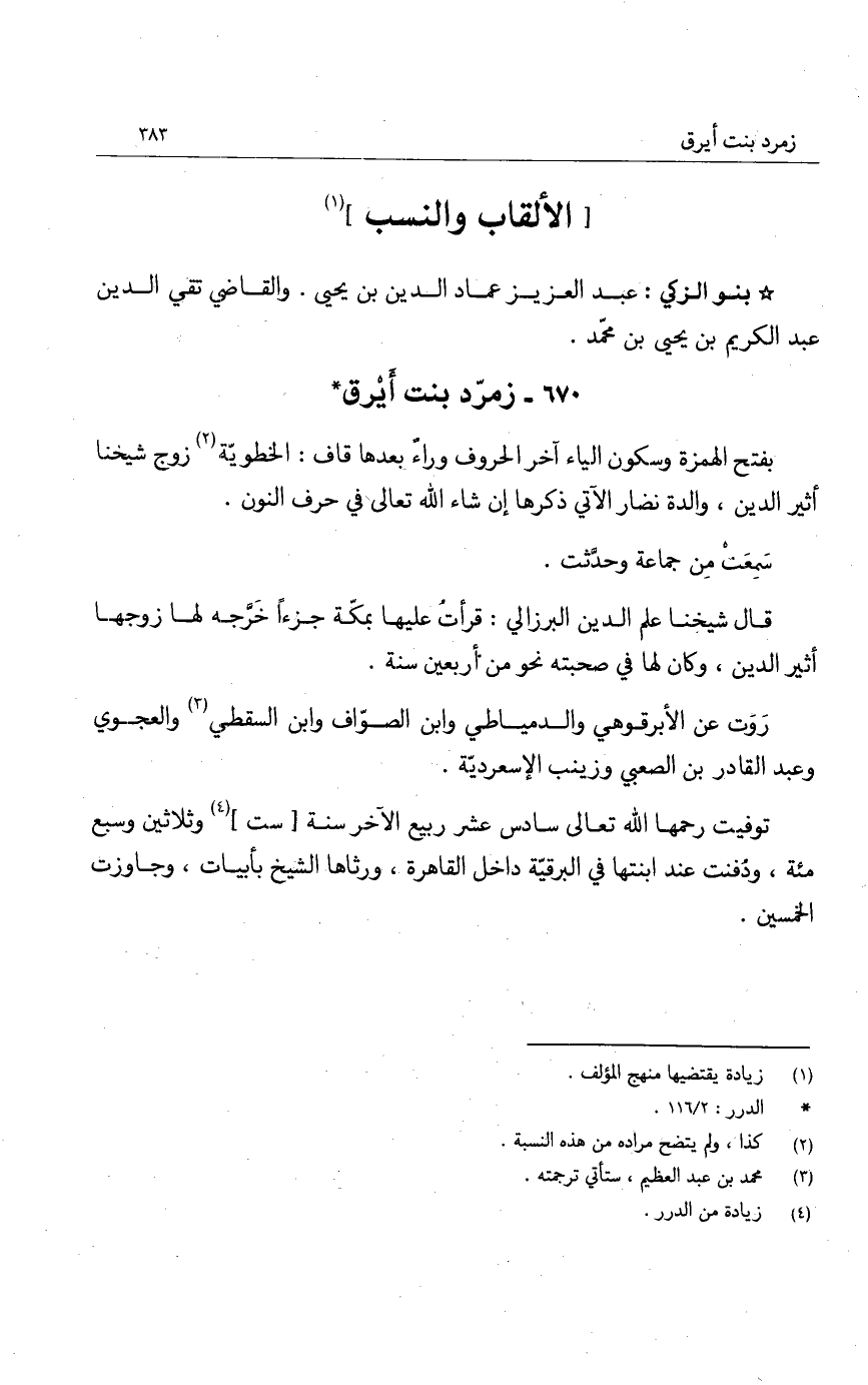 بفتح الهمزة وسكون الياء آخر الحروف وراء بعدها قاف: الخطوية زوج شيخنا أثير الدين، والدة نضار الآتي ذكرها إن شاء الله تعالى في حرف النون.