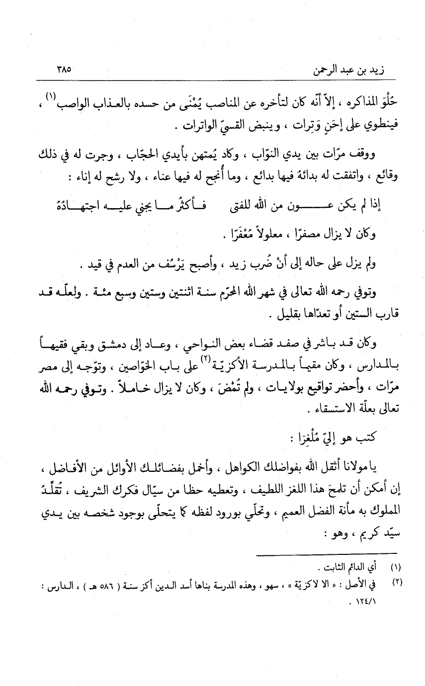 حلو المذاكره، إلا أنه كان لتأخره عن المناصب يمنى من حسده بالعذاب الواصب، فينطوي على إحن وترات، وينبض القسي الواترات.