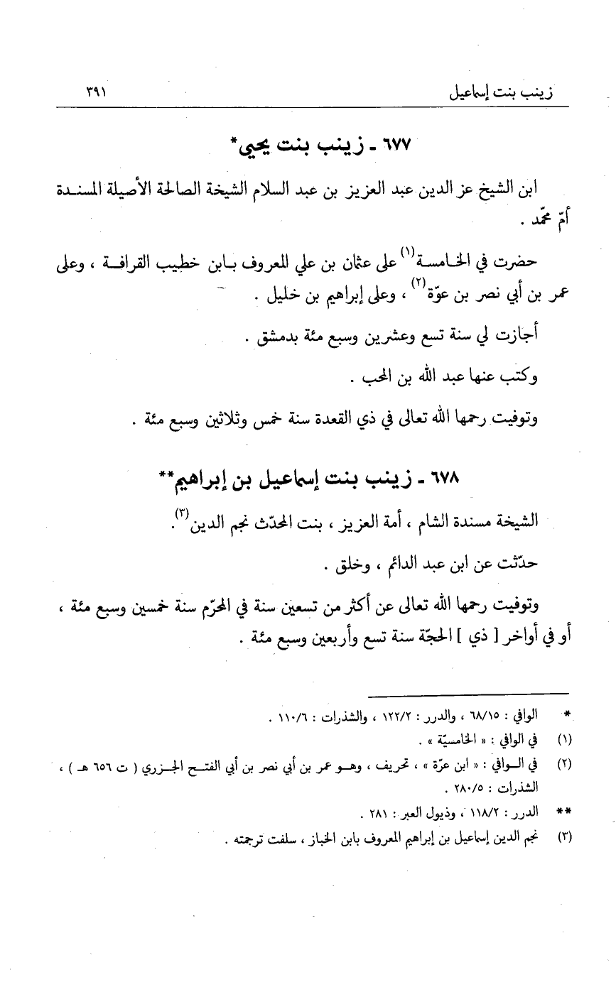 ابن الشيخ عز الدين عبد العزيز بن عبد السلام الشيخة الصالحة الأصيلة المسندة أم محمد.
