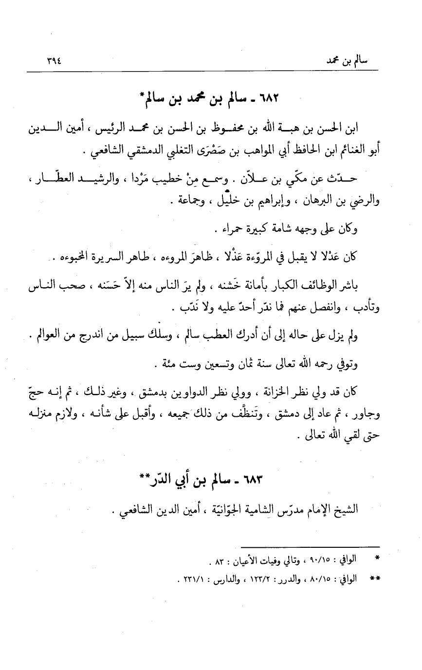 الشيخ الإمام مدرس الشامية الجوانية، أمين الدين الشافعي.