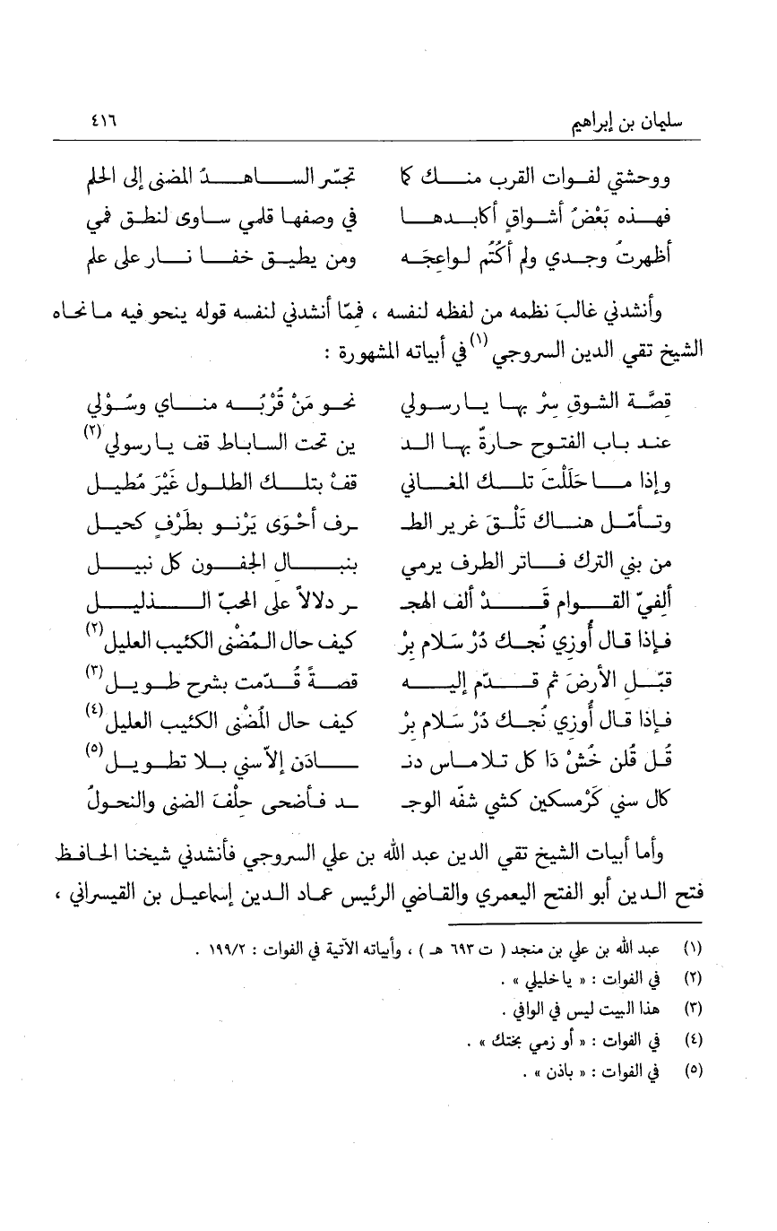 وأما أبيات الشيخ تقي الدين عبد الله بن علي السروجي فأنشدني شيخنا الحافظ فتح الدين أبو الفتح اليعمري والقاضي الرئيس عماد الدين إسماعيل بن القيسراني،
