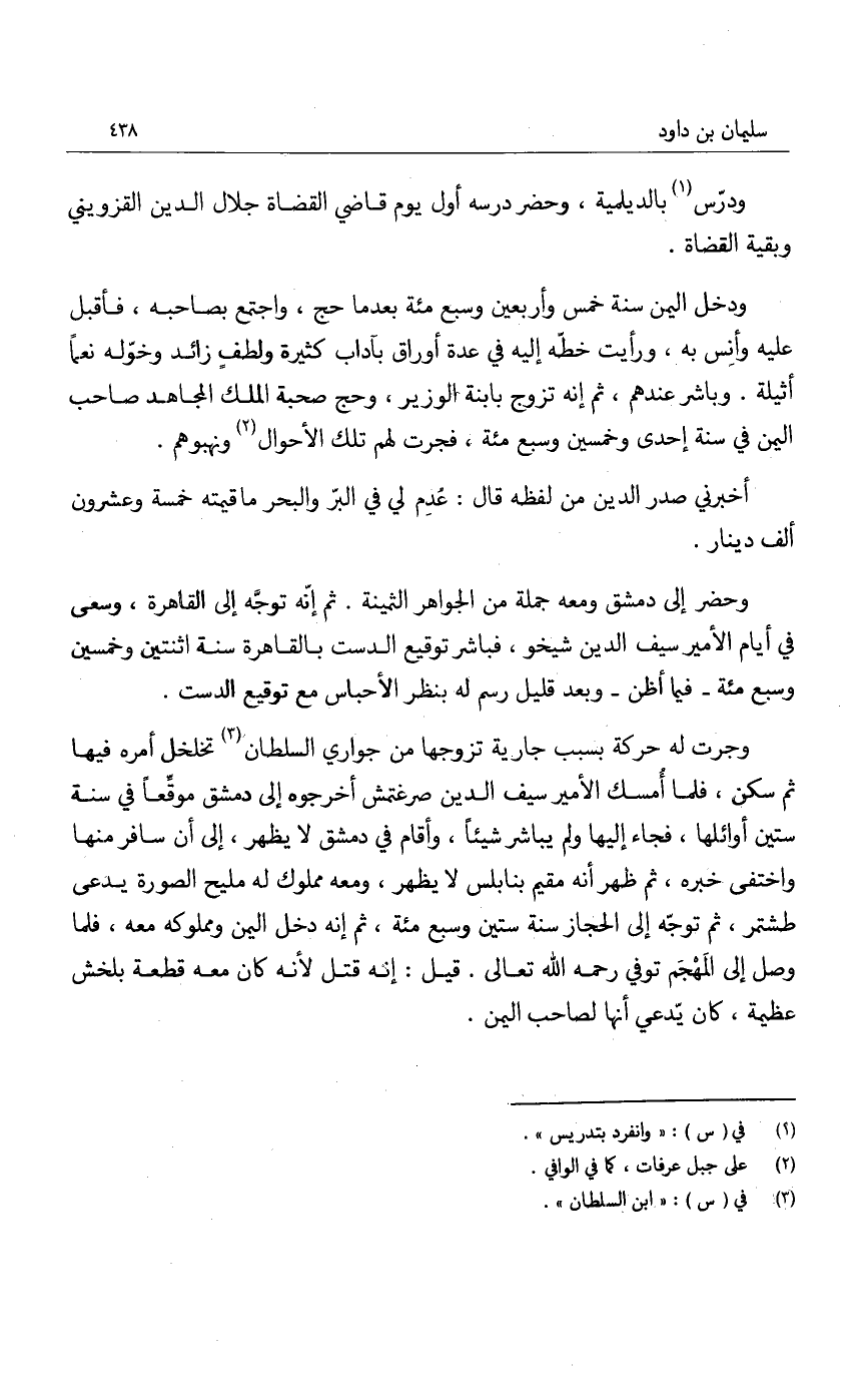 ودخل اليمن سنة خمس وأربعين وسبع مئة بعدما حج، واجتمع بصاحبه، فأقبل عليه وأنس به، ورأيت خطه إليه في عدة أوراق بآداب كثيرة ولطف زائد وخوله نعماً أثيلة. وباشر عندهم، ثم إنه تزوج بابنة الوزير، وحد صحبة الملك المجاهد صاحب اليمن في سنة إحدى وخمسين وسبع مئة، فجرت لهم تلك الأحوال ونهبوهم.