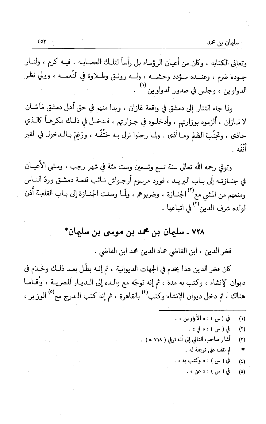 ولما جاء التتار إلى دمشق في واقعة غازان، وبدا منهم في حق أهل دمشق ماشان لا مازان، ألزموه بوزارتهم، وأدخلوه في جزارتهم، فدخل في ذلك مكرهاً كالذي حاذى، وتجنب الظلم وما آذى. ولما رحلوا نزل به حتفه، ورغم بالدخول في القبر أنفه.
