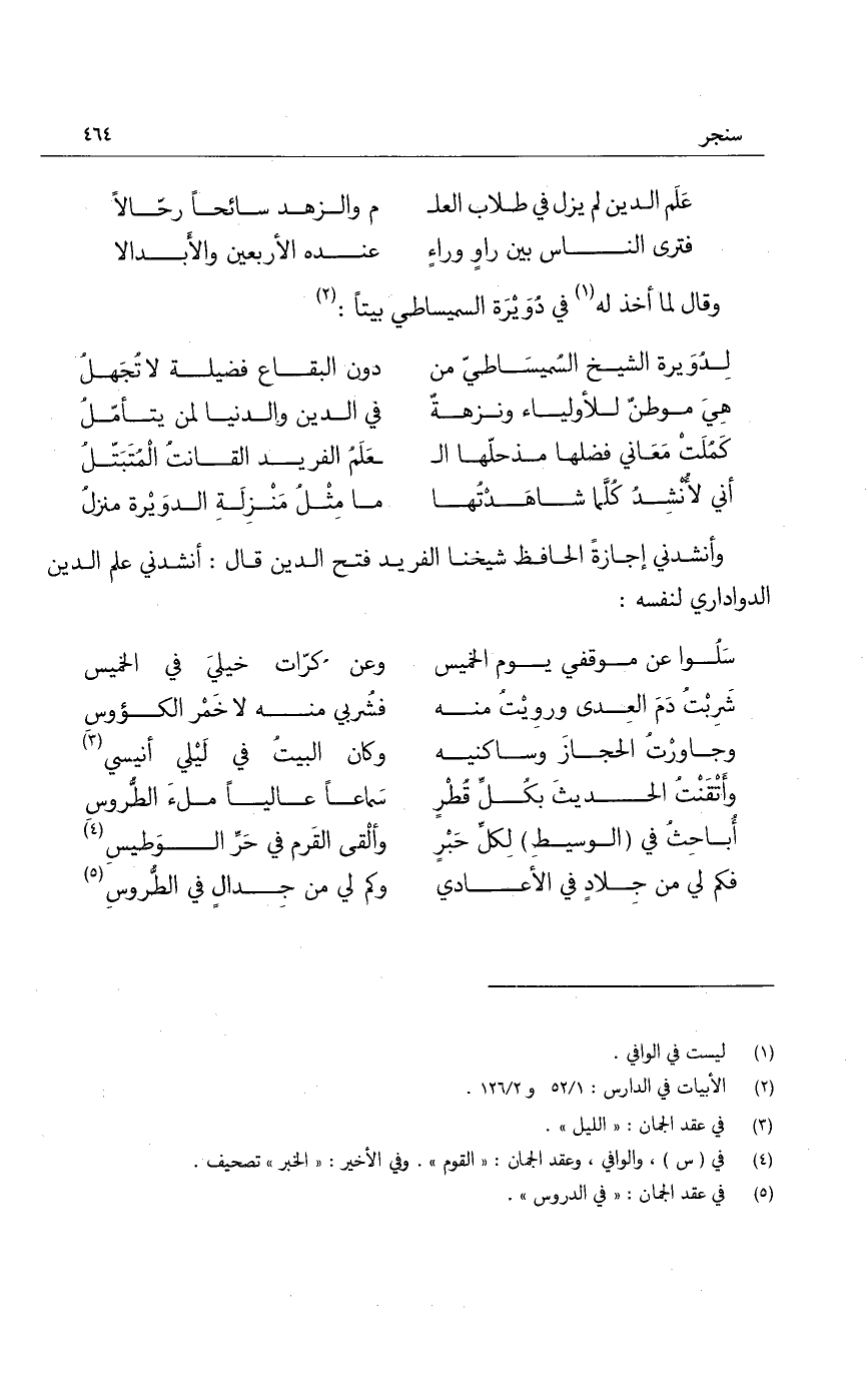وأنشدني إجازةً الحافظ شيخنا الفريد فتح الدين قال: أنشدني علم الدين الدواداري لنفسه: