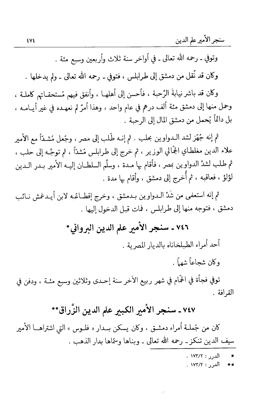 سنجر الأمير الكبير علم الدين الزراق