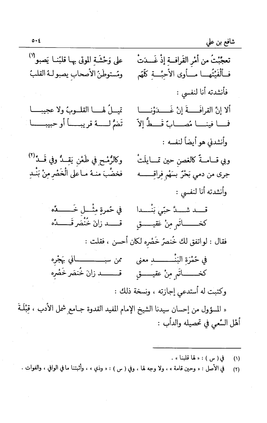 وكتبت له أستدعي إجازته، ونسخة ذلك: المسؤول من إحسان سيدنا الشيخ الإمام المفيد القدوة جامع شمل الأدب، قبلة أهل السعي في تحصيله والدأب: