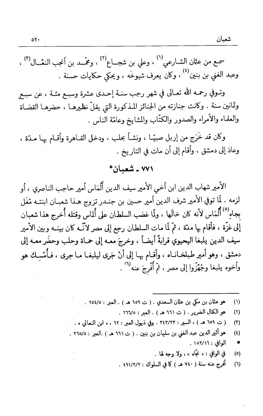 الأمير شهاب الدين ابن أخي الأمير سيف الدين ألماس أمير حاجب الناصري، أو لزمه. لما توفي الأمير شرف الدين أمير حسين بن جندر تزوج هذا شعبان ابنته مغل بجاه ألماس لأنه كان خالها، ولما غضب السلطان على ألماس وقتله أخرج هذا شعبان إلى غزة، فأقام بها مدة، ثم لما مات السلطان رجع إلى مصر لأنه كان بينه وبين الأمير سيف الدين يلبغا اليحيوي قرابة أيضاً، وخرج معه إلى حماة وحلب وحضر معه إلى دمشق، وهو أمير طبلخاناه، وأقام بها إلى أن جرى ليلبغا ما جرى، فأمسك هو وأخوه يلبغا وجهزوا إلى مصر، ثم أفرج عنه.