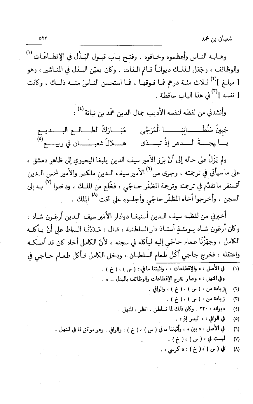 أخبرني من لفظه سيف الدين أسنبغا دوادار الأمير سيف الدين أرغون شاه، وكان أرغون شاه يومئذ أستاذ دار السلطنة، قال: مددنا السماط على أن يأكله الكامل، وجهزنا طعام حاجي إليه ليأكله في سجنه، لأن الكامل أخاه كان قد أمسكه واعتقله، فخرج حاجي أكل طعام السلطان، ودخل الكامل فأكل طعام حاجي في