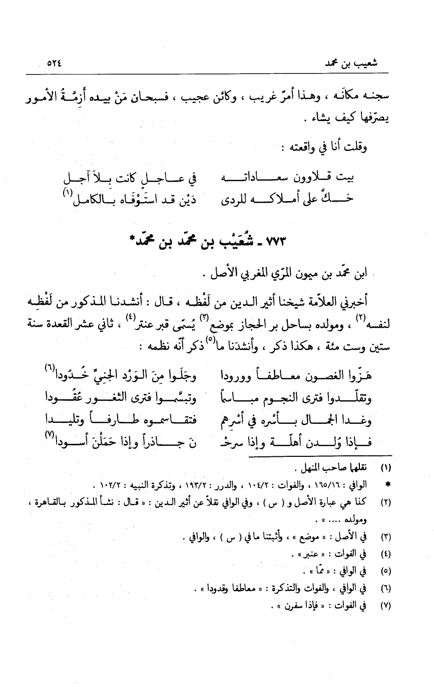 أخبرني العلامة شيخنا أثير الدين من لفظه، قال: أنشدنا المذكور من لفظه لنفسه، ومولده بساحل بر الحجاز بموضع يسمى قبر عنتر، ثاني عشر القعدة سنة ستين وست مئة، هكذا ذكر، وأنشدنا ما ذكر أنه نظمه: