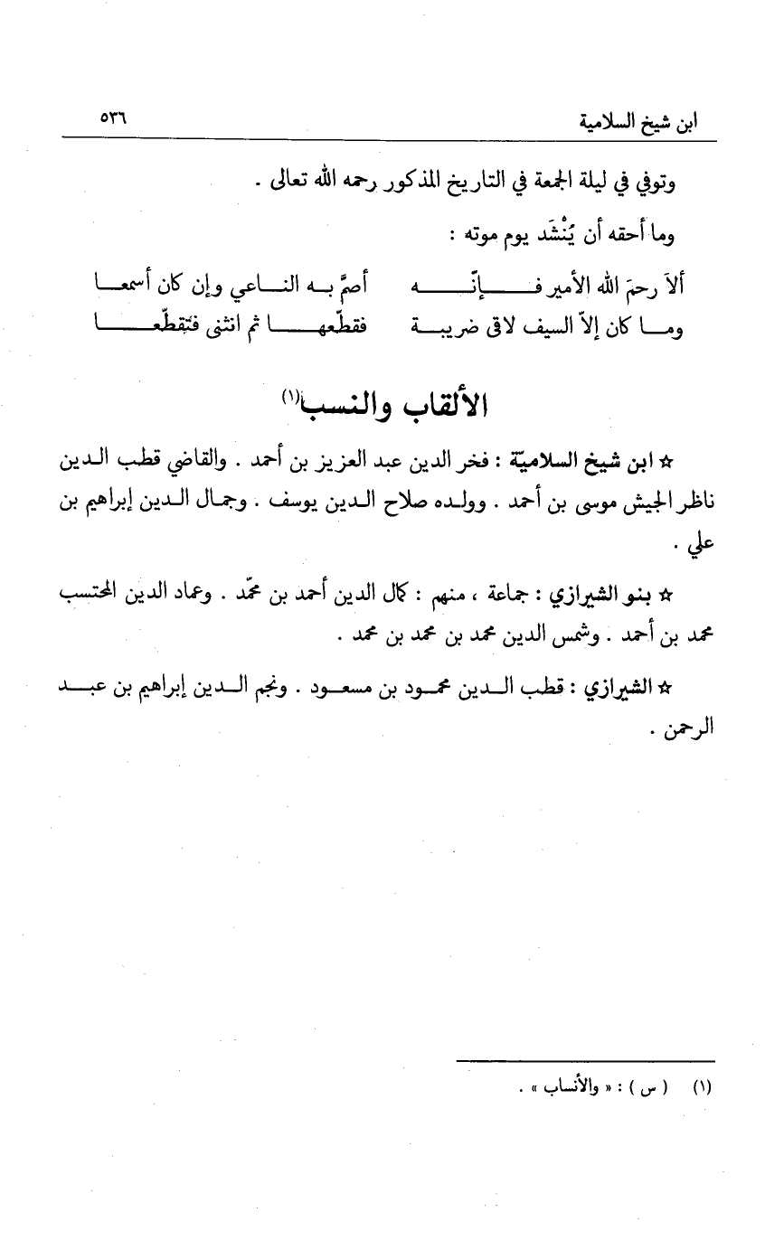 ابن شيخ السلامية: فخر الدين عبد العزيز بن أحمد. والقاضي قطب الدين ناظر الجيش موسى بن أحمد. وولده صلاح الدين يوسف. وجمال الدين إبراهيم بن علي.