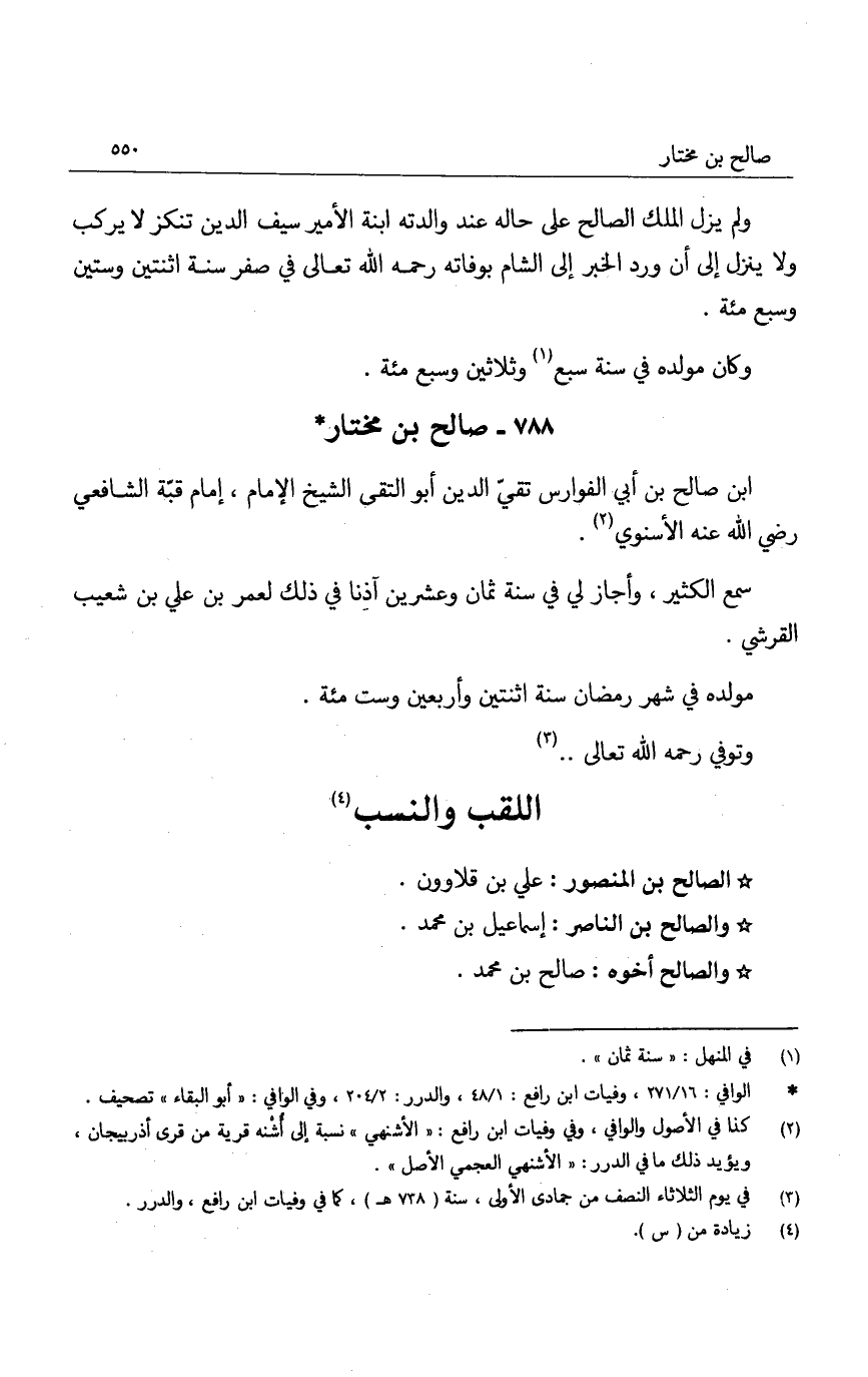 ولم يزل الملك الصالح على حاله عند والدته ابنة الأمير سيف الدين تنكز لا يركب ولا ينزل إلى أن ورد الخبر إلى الشام بوفاته رحمه الله تعالى في صفر سنة اثنتين وستين وسبع مئة.