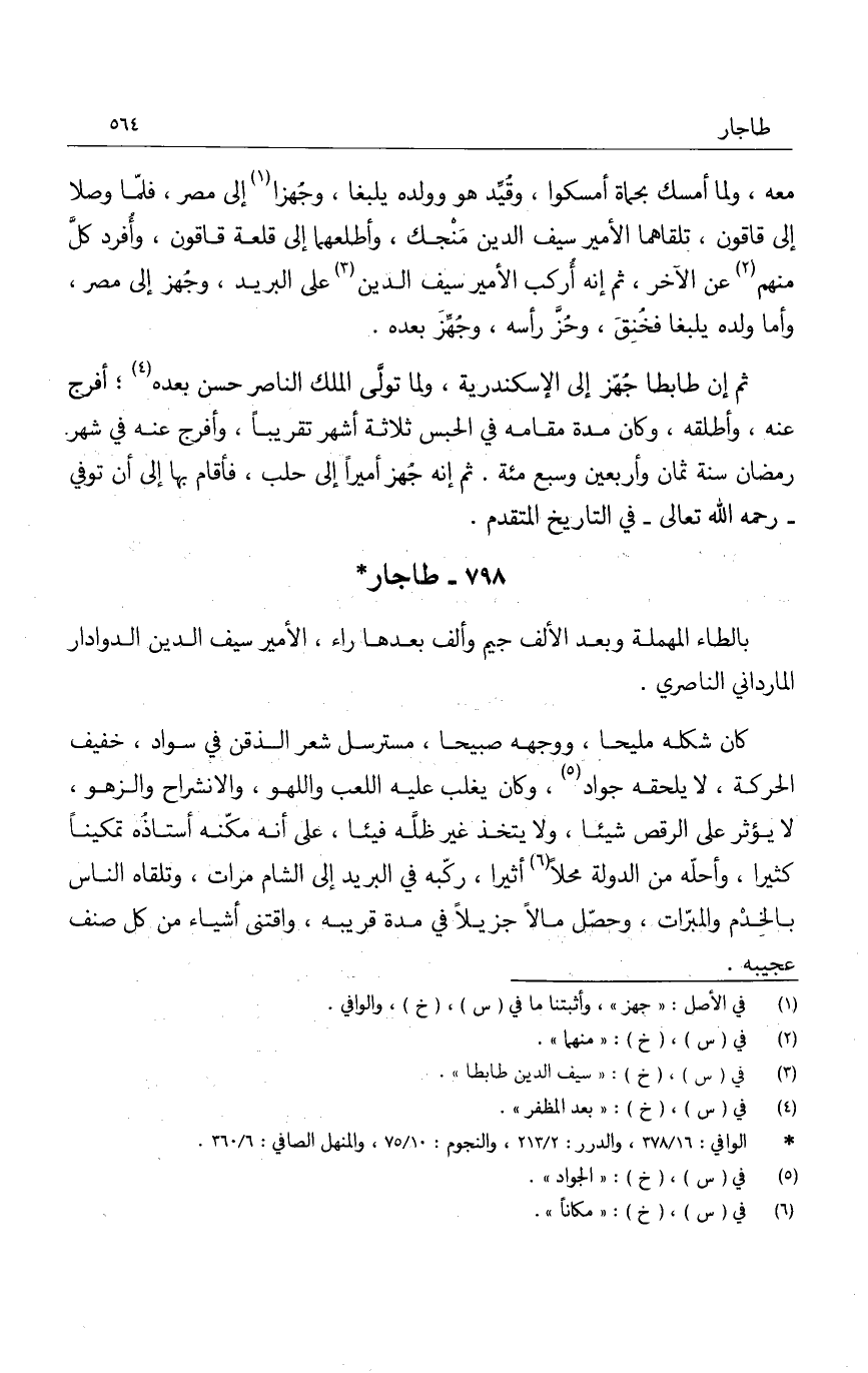 بالطاء المهملة وبعد الألف جيم وألف بعدها راء، الأمير سيف الدين الدوادار المارداني الناصري.