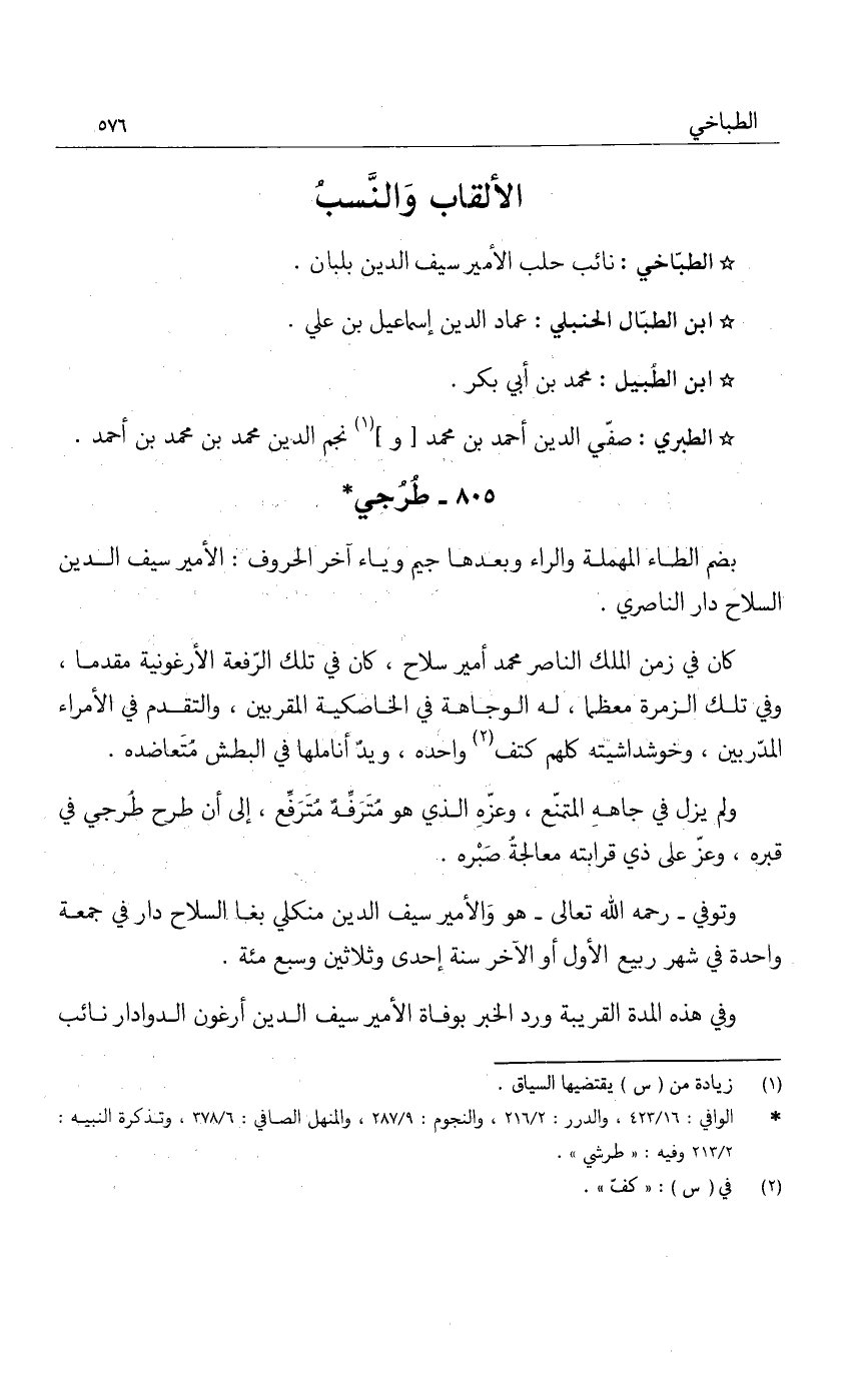 بضم الطاء المهملة والراء وبعدها جيم وياء آخر الحروف: الأمير سيف الدين السلاح دار الناصري.