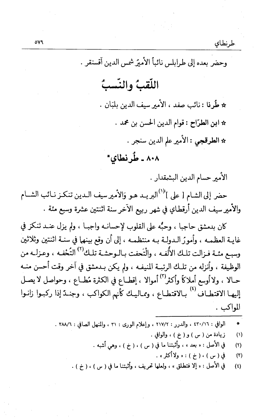 كان بدمشق حاجبا، وحبه على القلوب لإحسانه واجبا، ولم يزل عند تنكز في غاية العظمه، وأمور الدولة به منتظمه، إلى أن وقع بينهما في سنة اثنتين وثلاثين وسبع مئة فزالت تلك الألفه، والتحفت بالوحشة تلك التحفه، وعزله من الوظيفة، وأنزله من تلك الرتبة المنيفه، ولم يكن بدمشق في آخر وقت أحسن منه حالا، ولا أوسع أملاكاً وأكثر أموالا، إقطاع في الكثرة مطاع، وحواصل لا يصل إليها الاقتطاف بالاقتطاع، ومماليك كأنهم الكواكب، وجند إذا ركبوا زانوا المواكب.