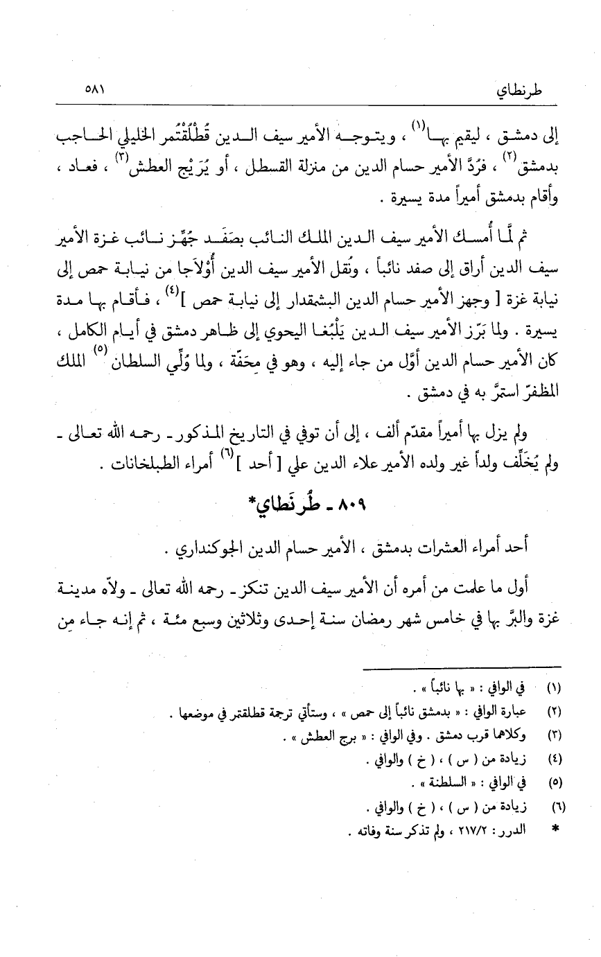 ولم يزل بها أميراً مقدم ألف، إلى أن توفي في التاريخ المذكور - رحمه الله تعالى - ولم يخلف ولداً غير ولده الأمير علاء الدين علي أحد أمراء الطبلخانات.