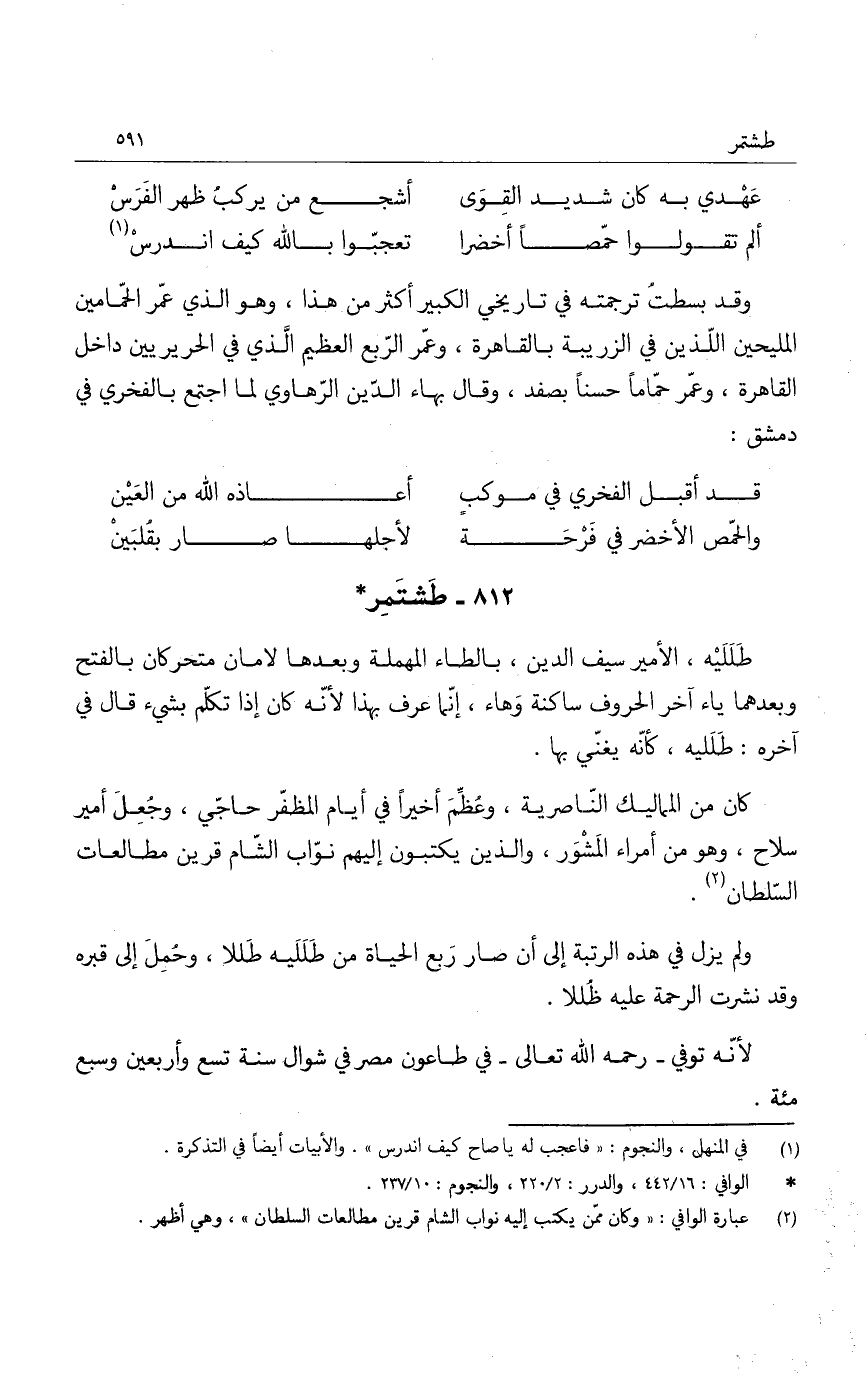 طلليه، الأمير سيف الدين، بالطاء المهملة وبعدها لامان متحركان بالفتح وبعدما ياء آخر الحروف ساكنة وهاء، إنما عرف بهذا لأنه كان إذا تكلم بشيء قال في آخره: طلليه، كأنه يغني بها.