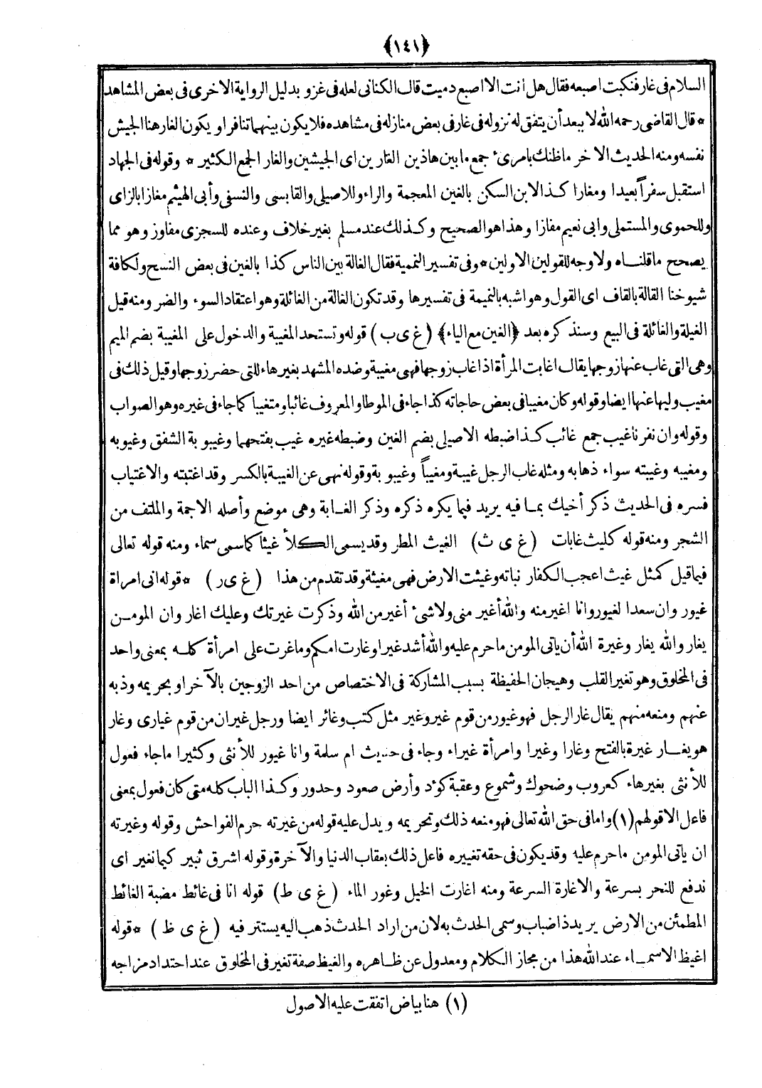 (غ ي ر) قَوْله إِنِّي امْرَأَة غيور وَأَن سَعْدا لغيور وَأَنا أغير مِنْهُ وَالله أغير مني وَلَا شَيْء أغير من الله وَذكرت غيرتك وَعَلَيْك أغار وَأَن الْمُؤمن يغار وَالله يغار وغيرة الله أَن يَأْتِي الْمُؤمن مَا حرم عَلَيْهِ وَالله أَشد غيرا وَغَارَتْ امكم وَمَا غرت على امْرَأَة كُله بِمَعْنى وَاحِد فِي الْمَخْلُوق وَهُوَ تغير الْقلب وهيجان الحفيظة بِسَبَب الْمُشَاركَة فِي الِاخْتِصَاص من أحد الزَّوْجَيْنِ بِالْآخرِ أَو بحريمه وذبه عَنْهُم وَمنعه مِنْهُم يُقَال غَار الرجل فَهُوَ غيور من قوم غير وَغير مثل كتب وغائر أَيْضا وَرجل غير أَن من قوم غياري وغار هُوَ يغار غيرَة بِالْفَتْح وغارا وغيرا وَامْرَأَة غيراء وَجَاء فِي حَدِيث أم سَلمَة وَأَنا غيور للْأُنْثَى وَكَثِيرًا مَا جَاءَ فعول للْأُنْثَى بِغَيْر هَاء كعروب وضحوك وشموع وَعقبَة كؤد وَأَرْض صعُود وحدور وَكَذَا الْبَاب كُله مَتى كَانَ فعول بِمَعْنى فَاعل إِلَّا قَوْلهم وَأما فِي حق الله تَعَالَى فَهُوَ مَنعه ذَلِك وتحريمه وَيدل عَلَيْهِ قَوْله من غيرته حرم الْفَوَاحِش وَقَوله وغيرته أَن يَأْتِي الْمُؤمن مَا حرم عَلَيْهِ وَقد يكون فِي حَقه تَغْيِيره فَاعل ذَلِك بعقاب الدُّنْيَا وَالْآخِرَة وَقَوله أشرق ثبير كَيْمَا نغير أَي ندفع للنحر بِسُرْعَة والإغارة السرعة وَمِنْه أغارت الْخَيل وغور المَاء
