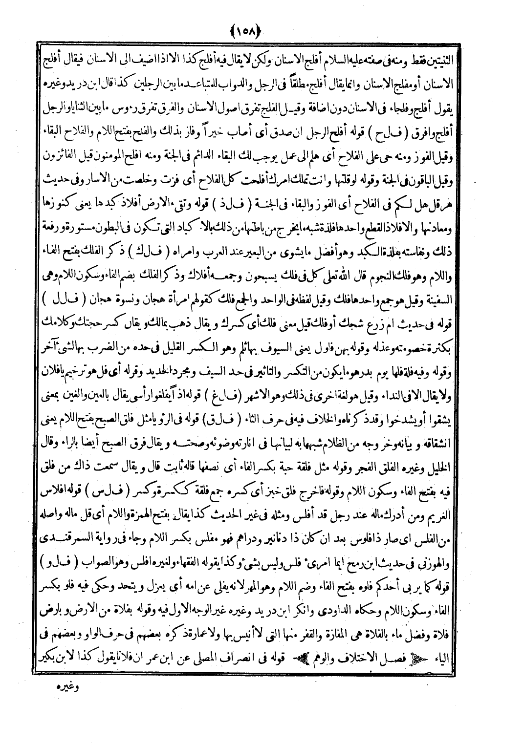 (ف ل ح) قَوْله أَفْلح الرجل أَن صدق أَي أصَاب خيرا وفاز بذلك والفلح بِفَتْح اللَّام والفلاح الْبَقَاء وَقيل الْفَوْز وَمِنْه حَيّ على الْفَلاح أَي هَلُمَّ إِلَى عمل يُوجب لَك الْبَقَاء الدَّائِم فِي الْجنَّة وَمِنْه أَفْلح الْمُؤْمِنُونَ قيل الفائزون وَقيل الْبَاقُونَ فِي الْجنَّة وَقَوله لَو قلتهَا وَأَنت تملك أَمرك أفلحت كل الْفَلاح أَي فزت وخلصت من الأسار وَفِي حَدِيث هِرقل هَل لكم فِي الْفَلاح أَي الْفَوْز والبقاء فِي الْجنَّة