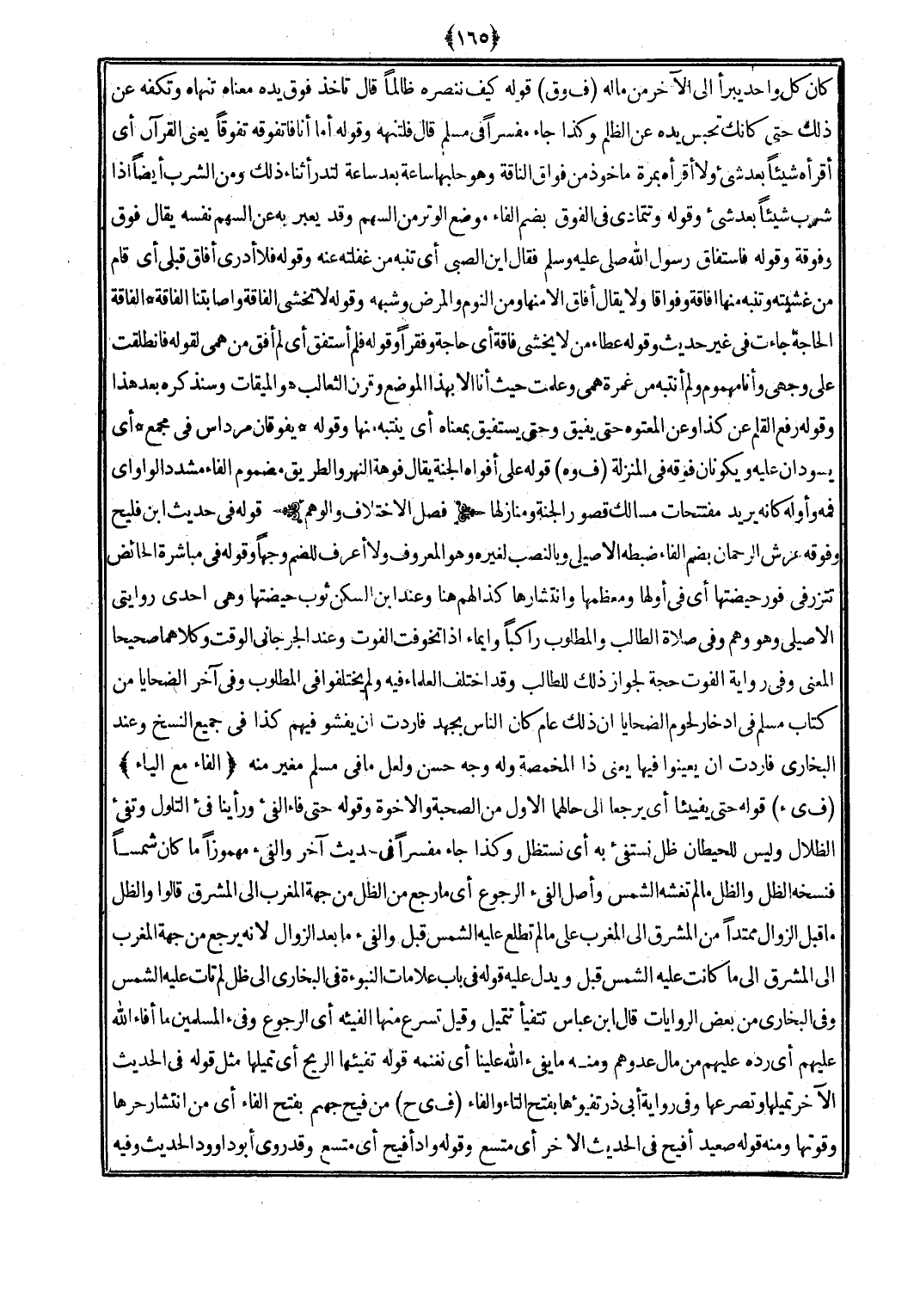 قَوْله فِي حَدِيث ابْن فليح وفوقه عرش الرَّحْمَن بِضَم الْفَاء ضَبطه الْأصيلِيّ وَبِالنَّصبِ لغيره وَهُوَ الْمَعْرُوف وَلَا أعرف للضم وَجها وَقَوله فِي مُبَاشرَة الْحَائِض تتزرفي فَور حَيْضَتهَا أَي فِي أَولهَا ومعظمها وانتشارها كَذَا لَهُم هُنَا وَعند ابْن السكن ثوب حَيْضَتهَا وَهِي إِحْدَى روايتي الْأصيلِيّ وَهُوَ وهم وَفِي صَلَاة الطَّالِب وَالْمَطْلُوب رَاكِبًا وإيماء إِذا تخوفت الْفَوْت وَعند الْجِرْجَانِيّ الْوَقْت وَكِلَاهُمَا صَحِيحا الْمَعْنى وَفِي رِوَايَة الْفَوْت حجَّة لجَوَاز ذَلِك للطَّالِب وَقد اخْتلف الْعلمَاء فِيهِ وَلم يَخْتَلِفُوا فِي الْمَطْلُوب وَفِي آخر الضَّحَايَا من كتاب مُسلم فِي إدخار لُحُوم الضَّحَايَا أَن ذَلِك عَام كَانَ النَّاس بِجهْد فَأَرَدْت أَن يفشو فيهم كَذَا فِي جَمِيع النّسخ وَعند البُخَارِيّ فَأَرَدْت أَن يعينوا فِيهَا يَعْنِي ذَا المخمصة وَله وَجه حسن وَلَعَلَّ مَا فِي مُسلم مغير مِنْهُ