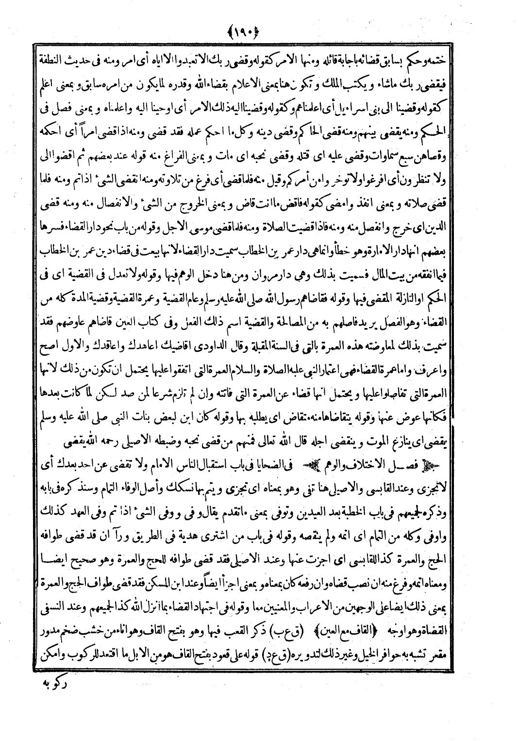 (أَي أَمر وَمِنْه فِي حَدِيث النُّطْفَة فَيَقْضِي رَبك مَا شَاءَ وَيكْتب الْملك وَتَكون هُنَا بِمَعْنى الْإِعْلَام بِقَضَاء الله وَقدره لما يكون من أمره سَابق وَبِمَعْنى أعلم كَقَوْلِه وقضينا إِلَى بني إِسْرَائِيل أَي أعلمناهم وَكَقَوْلِه وقضينا إِلَيْهِ ذَلِك الْأَمر أَي أَوْحَينَا إِلَيْهِ وأعلمناه وَبِمَعْنى فصل فِي الحكم وَمِنْه يقْضِي بَينهم وَمِنْه قضى الْحَاكِم وَقضى دينه وكل مَا أحكم عمله فقد قضى وَمِنْه إِذا قضى أمرا أَي أحكمه وقصاهن سبع سماوات وَقضى عَلَيْهِ أَي قَتله وَقضى نحبه أَي مَاتَ وَبِمَعْنى الْفَرَاغ مِنْهُ قَوْله عِنْد بَعضهم ثمَّ اقضوا إِلَيّ وَلَا تنْظرُون أَي أفرغوا وَلَا توخروا من أَمركُم وَقيل مِنْهُ فَلَمَّا قضى أَي فرغ من تِلَاوَته وَمِنْه انْقَضى الشَّيْء إِذا أتم وَمِنْه فَلَمَّا قضى صلَاته وَبِمَعْنى أنفذ وأمضى كَقَوْلِه فَاقْض مَا أَنْت قَاض وَبِمَعْنى الْخُرُوج من الشَّيْء والانفصال مِنْهُ وَمِنْه قضى الدّين أَي خرج وانفصل مِنْهُ وَمِنْه فَإِذا قضيت الصَّلَاة وَمِنْه فَلَمَّا قضى مُوسَى الْأَجَل وَقَوله من بَاب نَحْو دَار الْقَضَاء فَسرهَا بَعضهم أَنَّهَا دَار الْإِمَارَة وَهُوَ خطأ وَإِنَّمَا هِيَ دَار عمر بن الْخطاب سميت دَار الْقَضَاء لِأَنَّهَا بِيعَتْ فِي قَضَاء دين عمر بن الْخطاب فِيمَا أنفقهُ من بَيت المَال فسميت بذلك وَهِي دَار مَرْوَان وَمن هُنَا دخل الْوَهم فِيهَا وَقَوله وَلَا تعدل فِي الْقَضِيَّة أَي فِي الحكم أَو النَّازِلَة المقضى فِيهَا وَقَوله فقاضاهم رَسُول الله (صلى الله عَلَيْهِ وَسلم) وعام الْقَضِيَّة وَعمرَة الْقَضِيَّة وَقَضِيَّة الْمدَّة كُله من الْقَضَاء وَهُوَ الْفَصْل يُرِيد فأصلهم بِهِ من الْمُصَالحَة والقضية اسْم ذَلِك الْفِعْل وَفِي كتاب الْعين قاضاهم عاوضهم فقد سميت بذلك لمعاوضته هَذِه الْعمرَة بِالَّتِي فِي السّنة الْمُقبلَة وَقَالَ الدَّاودِيّ أقاضيك أعاهدك واعاقدك وَالْأول أصح وَأعرف وَأما عمْرَة الْقَضَاء فَهِيَ اعتمار النَّبِي (صلى الله عَلَيْهِ وَسلم) الْعمرَة الَّتِي اتَّفقُوا عَلَيْهَا يحْتَمل أَن تكون من ذَلِك لِأَنَّهَا الْعمرَة الَّتِي تفاصلوا عَلَيْهَا وَيحْتَمل أَنَّهَا قَضَاء عَن الْعمرَة الَّتِي فَاتَتْهُ وَإِن لم تلْزم شرعا لمن صد لَكِن لما كَانَت بعْدهَا فَكَأَنَّهَا عوض عَنْهَا وَقَوله يتقاضاها مِنْهُ متقاض أَي يَطْلُبهُ بهَا وَقَوله كَانَ ابْن لبَعض بَنَات النَّبِي (صلى الله عَلَيْهِ وَسلم) يقْضى أَن يُنَازع الْمَوْت وينقضي أَجله قَالَ الله تَعَالَى) فَمنهمْ من قضى نحبه