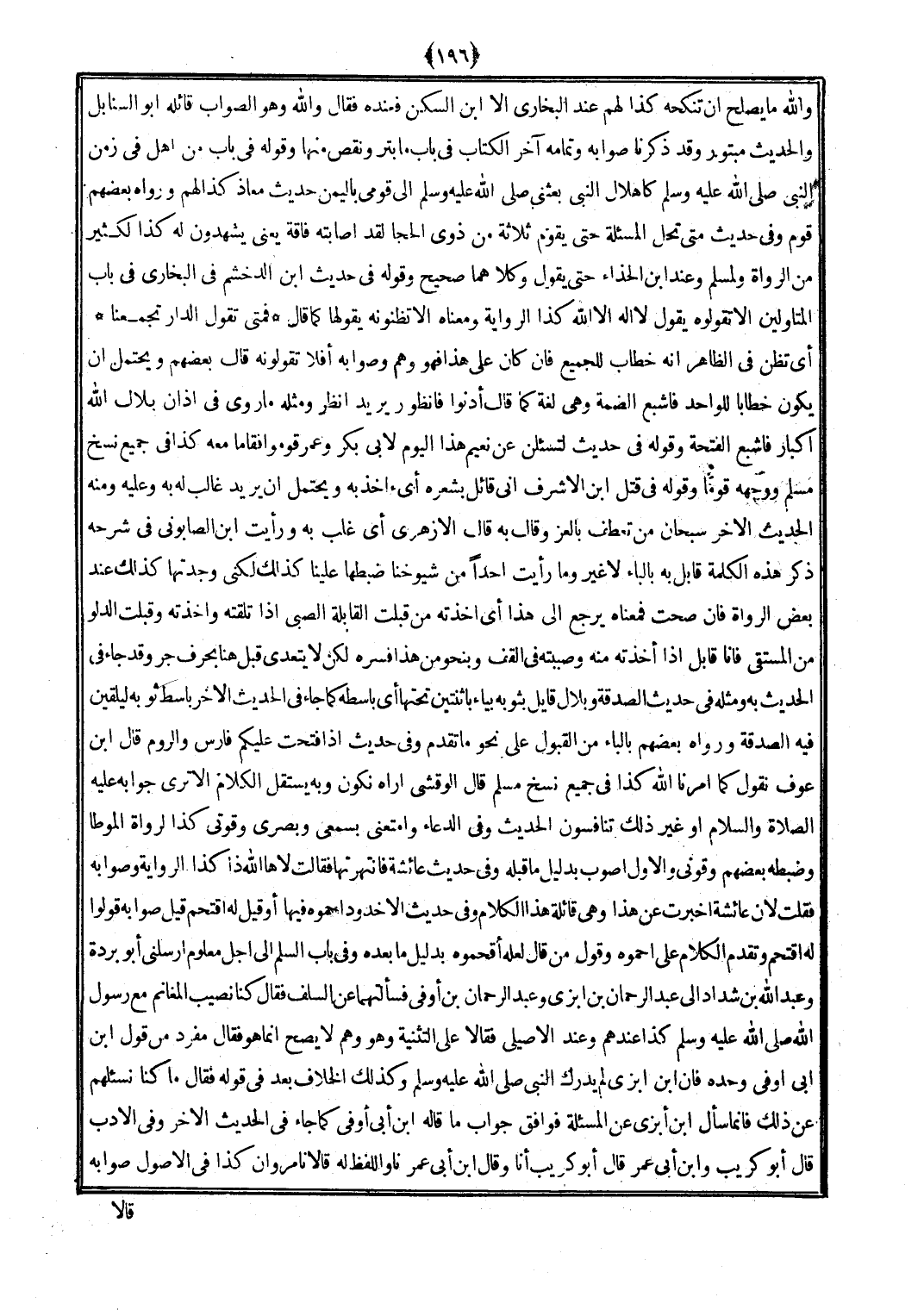 أَي تظن فِي الظَّاهِر أَنه خطاب للْجَمِيع فَإِن كَانَ على هَذَا فَهُوَ وهم وَصَوَابه أَفلا تقولونه قَالَ بَعضهم وَيحْتَمل أَن يكون خطابا للْوَاحِد فأشبع الضمة وَهِي لُغَة كَمَا قَالَ أدنوا فانظور يُرِيد انْظُر وَمثله مَا رُوِيَ فِي أَذَان بِلَال الله إكبار فاشبع الفتحة وَقَوله فِي حَدِيث لتسئلن عَن نعيم هَذَا الْيَوْم لأبي بكر وَعمر قومُوا فقاما مَعَه كَذَا فِي جَمِيع نسخ مُسلم وَوَجهه قوما وَقَوله فِي قتل ابْن الْأَشْرَف أَنِّي قَائِل بِشعرِهِ أَي آخذ بِهِ وَيحْتَمل أَن يُرِيد غَالب لَهُ بِهِ وَعَلِيهِ وَمِنْه الحَدِيث الآخر سُبْحَانَ من تعطف بالعز وَقَالَ بِهِ قَالَ الْأَزْهَرِي أَي غلب بِهِ وَرَأَيْت ابْن الصَّابُونِي فِي شَرحه ذكر هَذِه الْكَلِمَة قَابل بِهِ بِالْبَاء لَا غير وَمَا رَأَيْت أحدا من شُيُوخنَا ضَبطهَا علينا كَذَلِك لكني وَجدتهَا كَذَلِك عِنْد بعض الروَاة فَإِن صحت فَمَعْنَاه يرجع إِلَى هَذَا أَي أَخَذته من قبلت الْقَابِلَة الصَّبِي إِذا تَلَقَّتْهُ وأخذته وَقبلت الدَّلْو من المستقي فَأَنا قَابل إِذا أَخَذته مِنْهُ وصببته فِي القف وَبِنَحْوِ من هَذَا فسره لَكِن لَا يتَعَدَّى قبل هُنَا بِحرف جر وَقد جَاءَ فِي الحَدِيث بِهِ وَمثله فِي حَدِيث الصَّدَقَة وبلال قايل بِثَوْبِهِ بياء بِاثْنَتَيْنِ تحتهَا أَي باسطه كَمَا جَاءَ فِي الحَدِيث الآخر باسط ثَوْبه ليلقين فِيهِ الصَّدَقَة وَرَوَاهُ بَعضهم بِالْبَاء من الْقبُول على نَحْو مَا تقدم وَفِي حَدِيث إِذا فتحت عَلَيْكُم فَارس وَالروم قَالَ ابْن عَوْف نقُول كَمَا أمرنَا الله كَذَا فِي جَمِيع نسخ مُسلم قَالَ الوقشي أرَاهُ نَكُون وَبِه يسْتَقلّ الْكَلَام أَلا ترى جَوَابه (صلى الله عَلَيْهِ وَسلم) أَو غير ذَلِك تنافسون الحَدِيث وَفِي الدُّعَاء وأمتعني بسمعي وبصري وقوتي كَذَا لرواة الْمُوَطَّأ وَضَبطه بَعضهم وقوني وَالْأول أصوب بِدَلِيل مَا قبله وَفِي حَدِيث عَائِشَة فانتهرتها فَقَالَت لَاها الله ذَا كَذَا الرِّوَايَة وَصَوَابه فَقلت لِأَن عَائِشَة أخْبرت عَن هَذَا وَهِي قائلة هَذَا الْكَلَام وَفِي حَدِيث الْأُخْدُود احموه فِيهَا أَو قيل لَهُ اقتحم قيل صَوَابه قُولُوا لَهُ اقتحم وَتقدم الْكَلَام على احموه وَقَول من قَالَ لَعَلَّه أقحموه بِدَلِيل مَا بعده وَفِي بَاب السّلم إِلَى أجل مَعْلُوم أَرْسلنِي أَبُو بردة وَعبد الله بن شَدَّاد إِلَى عبد الرَّحْمَن بن أَبْزَى وَعبد الرَّحْمَن بن أوفى فَسَأَلتهمَا عَن السّلف فَقَالَ كُنَّا نصيب الْمَغَانِم مَعَ رَسُول الله (صلى الله عَلَيْهِ وَسلم) كَذَا عِنْدهم وَعند الْأصيلِيّ فَقَالَا على التَّثْنِيَة وَهُوَ وهم لَا يَصح إِنَّمَا هُوَ فَقَالَ مُفْرد من قَول ابْن أبي أوفى وَحده فَإِن ابْن أَبْزَى لم يدْرك النَّبِي (صلى الله عَلَيْهِ وَسلم) وَكَذَلِكَ الْخلاف بعد فِي قَوْله فَقَالَ مَا كُنَّا نسألهم عَن ذَلِك فَإِنَّمَا سَأَلَ ابْن أَبْزَى عَن الْمَسْأَلَة فَوَافَقَ جَوَاب مَا قَالَه ابْن أبي أوفى كَمَا جَاءَ فِي الحَدِيث الآخر وَفِي الْأَدَب قَالَ أَبُو كريب وَابْن أبي عمر قَالَ أَبُو كريب أَنا وَقَالَ ابْن أبي عمر نَا وَاللَّفْظ لَهُ قَالَا نَا مَرْوَان كَذَا فِي الْأُصُول صَوَابه
