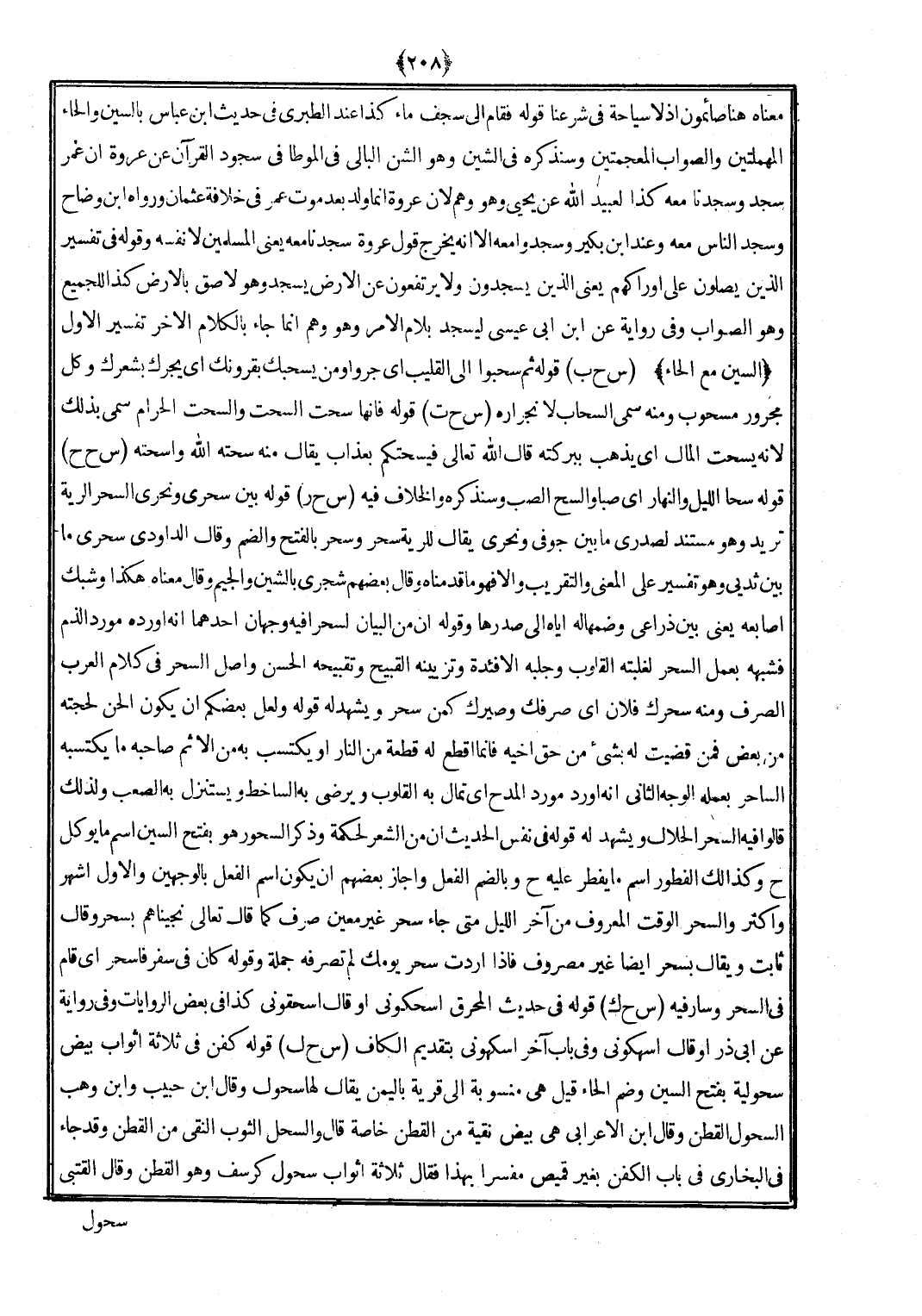 (س ح ر) قَوْله بَين سحرِي وَنَحْرِي السحر الرية تُرِيدُ وَهُوَ مُسْتَند لصدري مَا بَين جوفي وَنَحْرِي يُقَال للرية سحر وسحر بِالْفَتْح وَالضَّم وَقَالَ الدَّاودِيّ سحرِي مَا بَين ثديي وَهُوَ تَفْسِير على الْمَعْنى والتقريب وَإِلَّا فَهُوَ مَا قدمْنَاهُ وَقَالَ بَعضهم شجري بالشين وَالْجِيم وَقَالَ مَعْنَاهُ هَكَذَا وَشَبك أَصَابِعه يَعْنِي بَين ذراعي وَضمّهَا لَهُ إِيَّاه إِلَى صدرها وَقَوله أَن من الْبَيَان لسحرا فِيهِ وَجْهَان أَحدهمَا أَنه أوردهُ مورد الذَّم فشبهه بِعَمَل السحر لغلبته الْقُلُوب وجلبة الأفئدة وتزيينه الْقَبِيح وتقبيحه الْحسن وأصل السحر فِي كَلَام الْعَرَب الصّرْف وَمِنْه سحرك فلَان أَي صرفك وصيرك كمن سحر وَيشْهد لَهُ قَوْله وَلَعَلَّ بَعْضكُم أَن يكون الحن لحجته من بعض فَمن قضيت لَهُ بِشَيْء من حق أَخِيه فَإِنَّمَا أقطع لَهُ قِطْعَة من النَّار أَو يكْتَسب بِهِ من الْإِثْم صَاحبه مَا يكتسبه السَّاحر بِعَمَلِهِ الْوَجْه الثَّانِي أَنه أورد مورد الْمَدْح أَي تمال بِهِ الْقُلُوب ويرضى بِهِ الساخط وَيُسْتَنْزَلُ بِهِ الصعب وَلذَلِك قَالُوا فِيهِ السحر الْحَلَال وَيشْهد لَهُ قَوْله فِي نفس الحَدِيث أَن من الشّعْر لحكمة وَذكر السّحُور هُوَ بِفَتْح السِّين اسْم مَا يُوكل ح وَكَذَلِكَ الفطور اسْم مَا يفْطر عَلَيْهِ ح وبالضم الْفِعْل وَأَجَازَ بَعضهم أَن يكون اسْم الْفِعْل بِالْوَجْهَيْنِ وَالْأول أشهر وَأكْثر وَالسحر الْوَقْت الْمَعْرُوف من آخر اللَّيْل مَتى جَاءَ سحر غير معِين صرف كَمَا قَالَ تَعَالَى) نجيناهم بِسحر