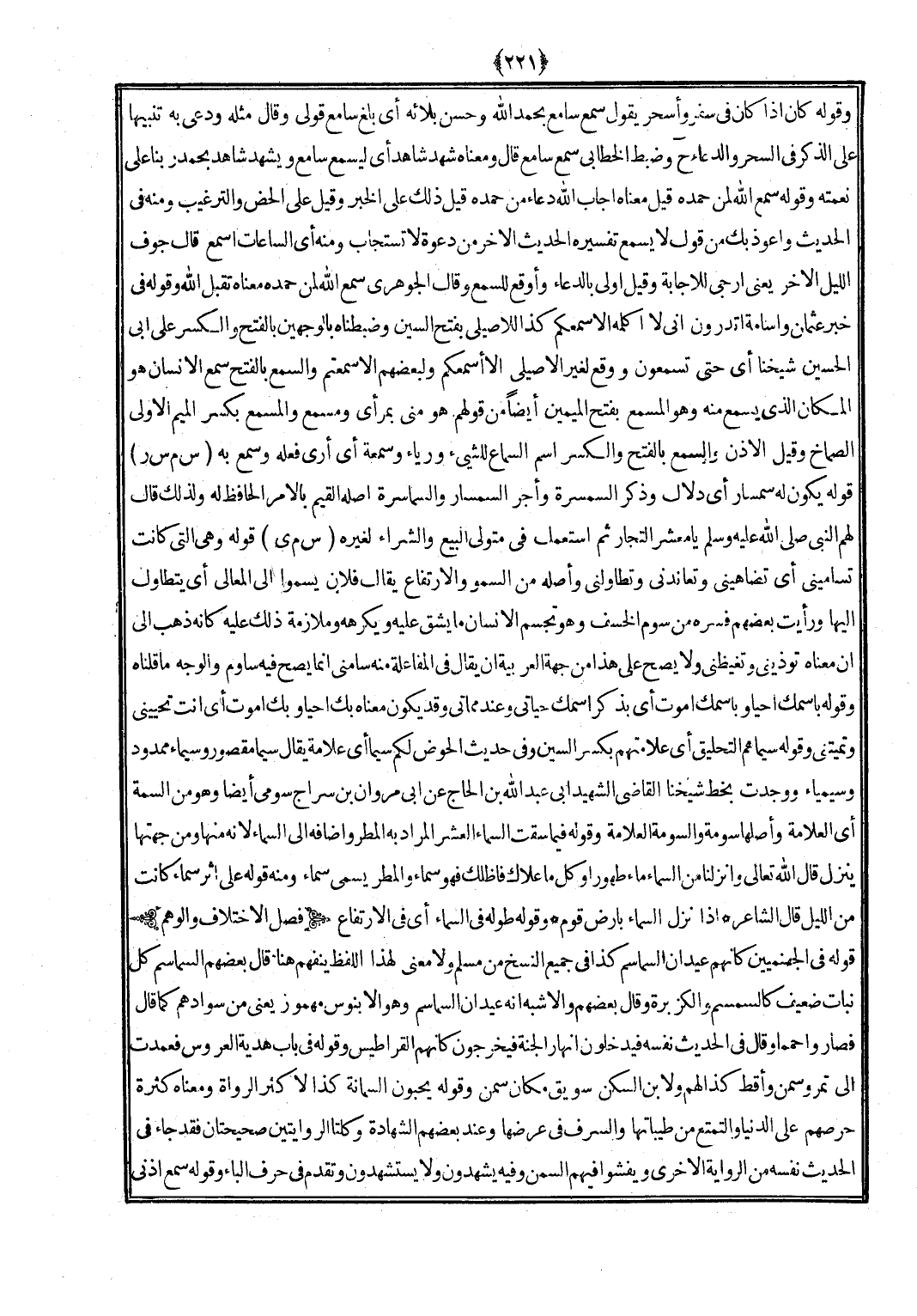 وَقَوله كَانَ إِذا كَانَ فِي سفر وأسحر يَقُول سمع سامع بِحَمْد الله وَحسن بلائه أَي بلغ سامع قولي وَقَالَ مثله ودعى بِهِ تَنْبِيها على الذّكر فِي السحر وَالدُّعَاء ح وَضبط الْخطابِيّ سمع سامع قَالَ وَمَعْنَاهُ شهد شَاهد أَي ليسمع سامع وَيشْهد شَاهد بِحَمْد رَبنَا على نعْمَته وَقَوله سمع الله لمن حَمده قيل مَعْنَاهُ أجَاب الله دُعَاء من حَمده قيل ذَلِك على الْخَبَر وَقيل على الحض وَالتَّرْغِيب وَمِنْه فِي الحَدِيث وَأَعُوذ بك من قَول لَا يسمع تَفْسِيره الحَدِيث الآخر من دَعْوَة لَا تستجاب وَمِنْه أَي السَّاعَات اسْمَع قَالَ جَوف اللَّيْل الآخر يَعْنِي أرجي للإجابة وَقيل أولى بِالدُّعَاءِ وأوقع للسمع وَقَالَ الْجَوْهَرِي سمع الله لمن حَمده مَعْنَاهُ تقبل الله وَقَوله فِي خبر عُثْمَان وَأُسَامَة أَتَدْرُونَ أَنِّي لَا ُأكَلِّمهُ إِلَّا سمعكم كَذَا للأصيلي بِفَتْح السِّين وضبطناه بِالْوَجْهَيْنِ بِالْفَتْح وَالْكَسْر على أبي الْحُسَيْن شَيخنَا أَي حَتَّى تَسْمَعُونَ وَوَقع لغير الْأصيلِيّ أَلا أسمعكم ولبعضهم أَلا سَمِعْتُمْ والسمع بِالْفَتْح سمع الْإِنْسَان هُوَ الْمَكَان الَّذِي يسمع مِنْهُ وَهُوَ المسمع بِفَتْح الميمين أَيْضا من قَوْلهم هُوَ منى بمرأى ومسمع والمسمع بِكَسْر الْمِيم الأولى الصماخ وَقيل الْأذن والسمع بِالْفَتْح وَالْكَسْر اسْم السماع للشَّيْء ورياء وَسُمْعَة أَي أرى فعله وَسمع بِهِ