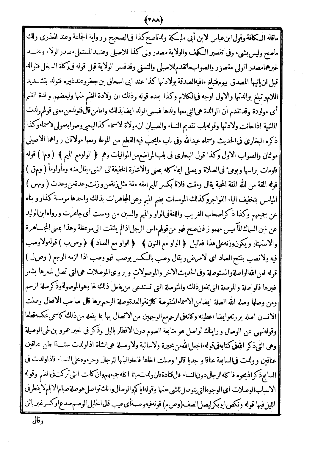 (وص ل) قَوْله لعن الله الْوَاصِلَة وَالْمسْتَوْصِلَة وَفِي الحَدِيث الآخر والموصولات ويروي الموصلات هِيَ الَّتِي تصل شعرهَا بِشعر غَيرهَا فالواصلة والموصلة الَّتِي تفعل ذَلِك والمتوصلة الَّتِي تستدعي من يفعل ذَلِك لَهَا وَهُوَ الموصولة وَذكر صلَة الرَّحِم وَمن وَصلهَا وَصله الله الصِّلَة أَيْضا من الْأَسْمَاء المنقوصة كالزنة وَالْعدة وصلَة الرَّحِم برهَا قَالَ صَاحب الْأَفْعَال وصلت الْإِنْسَان أَصله بررته وَأَيْضًا أَعْطيته وَكَأَنَّهُ فِي الرَّحِم مَعَ الْوَجْهَيْنِ من الِاتِّصَال بهَا بِمَا يَفْعَله من ذَلِك كَمَا سمي عَكسه قطعا وَقَوله نهى عَن الْوِصَال ورأيناك تواصل هُوَ مُتَابعَة الصَّوْم دون الْإِفْطَار بِاللَّيْلِ وَذكر فِي خبر عَمْرو بن لحى الوصيلة وَهِي الَّتِي ذكر الله فِي كِتَابه فِي قَوْله مَا جعل الله من بحيرة وَلَا سائبة وَلَا وصيلة هِيَ الشَّاة إِذا ولدت سِتَّة أبطن عناقين عناقين وَولدت فِي السَّابِعَة عنَاقًا وجديا قَالُوا وصلت أخاها فاحلوا لَبنهَا للرِّجَال وحرموه على النِّسَاء فَإِذا ولدت فِي السَّابِع ذكر أذبحوه فَأَكله الرِّجَال دون النِّسَاء قَالَ قَتَادَة فَإِن ولدت مَيتا أكله جَمِيعهم وَإِن كَانَت أُنْثَى تركت فِي الْغنم وَقَوله الْأَسْبَاب الوصلات أَي الْوُجُوه الَّتِي يتَوَصَّل للشَّيْء مِنْهَا وَقَوله إيَّاكُمْ والوصال وَإنَّك تواصل هُوَ صلَة صِيَام الْأَيَّام لَا يفْطر فِي اللَّيْل فِيهَا قَوْله ونكص أَبُو بكر ليصل الصَّفّ