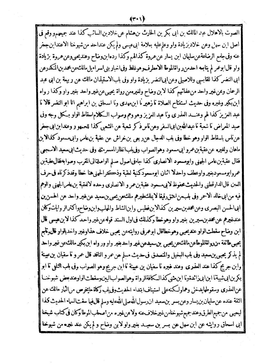 الصَّوْت بالإهلال عبد الْمَالِك بن أبي بكر بن الْحَارِث بن هِشَام عَن خَلاد بن السَّائِب كَذَا عِنْد جَمِيعهم وَوَقع فِي أصل ابْن سهل وَعَن خَلاد بِزِيَادَة وَاو وَعلم عَلَيْهِ بعلامة أبي عِيسَى وَلم يكن عِنْد أحد من شُيُوخنَا إِلَّا عِنْد ابْن جَعْفَر عَنهُ وَفِي جَامع الرضَاعَة عَن سُلَيْمَان ابْن يسَار عَن عُرْوَة كَذَا لَهُم وَكَذَا رده ابْن وضاح وَعند يحيى وَعَن عُرْوَة بِزِيَادَة وَاو قَالَ أَبُو عمر لم يُتَابِعه أحد من رُوَاة الْمُوَطَّأ إِلَّا مطرف وَهُوَ غلط وَفِي أَخْبَار بني إِسْرَائِيل مَالك عَن مُحَمَّد بن الْمُنْكَدر عَن أبي النَّضر كَذَا للقابسي وللأصيلي وَعَن أبي النَّضر بِزِيَادَة وَاو وَفِي بَاب الاستيذان مَالك عَن ربيعَة بن أبي عبد الرَّحْمَن وَعَن غير وَاحِد من عُلَمَائهمْ كَذَا لِابْنِ وضاح وَلغيره من رُوَاة يحيى عَن غير وَاحِد بِغَيْر وَاو وَكَذَا رَوَاهُ ابْن بكير وَغَيره وَفِي حَدِيث استفتاح الصَّلَاة نَا زُهَيْر نَا ابْن مهْدي ونا إِسْحَاق بن إِبْرَاهِيم أَنا أَبُو النَّضر قَالَا نَا عبد الْعَزِيز كَذَا لَهُم وَعند العذري ونا عبد الْعَزِيز وَهُوَ وهم وصواب الْكَلَام إِسْقَاط الْوَاو بِكُل وَجه وَفِي صيد المعراض نَا شُعْبَة نَا عبد الله بن أبي السّفر وَعَن نَاس ذكر شُعْبَة عَن الشّعبِيّ كَذَا لِلْجُمْهُورِ وَعند ابْن أبي جَعْفَر عَن نَاس بِإِسْقَاط الْوَاو وَهُوَ خطأ وَفِي بَاب الدَّجَّال عَن ربعي بن خرَاش عَن عقبَة بن عَامر وَأبي مَسْعُود كَذَا لِابْنِ ماهان وَلغيره عَن عقبَة بن عَمْرو أبي مَسْعُود وَهُوَ الصَّوَاب وَفِي بَاب أنظار الْمُعسر مثله وَفِي حَدِيث أبي سعيد الأسجعي فَقَالَ عقبَة بن عَامر الْجُهَنِيّ وَأَبُو مَسْعُود الْأنْصَارِيّ كَذَا جَاءَ فِي أصُول مُسلم الْوَاصِلَة إِلَى المقرب وَصَوَابه فَقَالَ عقبَة بن عَمْرو أَبُو مَسْعُود بِغَيْر وَاو عطف وَاحِد لَا اثْنَان أَبُو مَسْعُود كنية لعقبة وَذكر الْجُهَنِيّ هُنَا خطأ وَقد ذَكرْنَاهُ فِي حرف الْعين قَالَ الدَّارَقُطْنِيّ والْحَدِيث مَحْفُوظ لأبي مَسْعُود عقبَة بن عَمْرو الْأنْصَارِيّ وَحده لَا لعقبة بن عَامر الْجُهَنِيّ وَالوهم فِيهِ من أبي خَالِد الْأَحْمَر وَفِي بَاب من أعتق رَقِيقا لَا يملك غَيرهم ملك عَن يحيى بن سعيد عَن غير وَاحِد عَن الْحسن بن أبي الْحسن الْبَصْرِيّ وَعَن مُحَمَّد بن سِيرِين كَذَا لِابْنِ فطيس وَابْن الشَّاط والمهلب وَابْن وضاح وَأكْثر الرِّوَايَات وَكَانَ عِنْد غَيرهم عَن مُحَمَّد بن سِيرِين بِغَيْر وَاو وَهُوَ خطأ وَكَذَلِكَ فِي أول السَّنَد قَوْله عَن غير وَاحِد كَذَا لِابْنِ عِيسَى قَالَ ابْن وضاح سَقَطت الْوَاو عِنْد يحيى وَهُوَ خطأ قَالَ أَبُو عمر فِي رِوَايَته عَن يحيى خلاف هَذَا وَغير وَاحِد بِالْوَاو قَالَ وتابع يحيى طَائِفَة من رُوَاة الْمُوَطَّأ عَن مَالك عَن يحيى بن سعيد عَن غير وَاحِد بِغَيْر وَاو وَرَوَاهُ ابْن بكير مَالك عَن غير وَاحِد لم يذكر يحيى بن سعيد وَفِي بَاب الْبَخِيل والمتصدق فِي حَدِيث مُسلم عَن عَمْرو النَّاقِد قَالَ عَمْرو نَا سُفْيَان بن عُيَيْنَة وَابْن جريج كَذَا عِنْد العذري وَعند غَيره نَا سُفْيَان بن عُيَيْنَة نَا ابْن جريج وَهُوَ الصَّوَاب وَفِي بَاب التلقي نَا أَبُو بكر بن أبي شيبَة نَا ابْن أبي زَائِدَة ونا ابْن مثنى كَذَا لكافة الروَاة وَهُوَ الصَّوَاب الْبَين وَسَقَطت الْوَاو عِنْد بعض شُيُوخنَا عَن العذري وسقوطها يدْخل وهما وَلكنه على استيناف ابْتِدَاء الحَدِيث وَفِي بَاب زَكَاة مَا يخرص من الثِّمَار مَالك عَن الثِّقَة عِنْده عَن سُلَيْمَان بن يسَار وَعَن بسر بن سعيد أَن رَسُول الله (صلى الله عَلَيْهِ وَسلم) قَالَ فِيمَا سقت السَّمَاء الحَدِيث كَذَا ليحيى من جَمِيع الطّرق وَعند جَمِيع شُيُوخنَا من غير خلاف عَنهُ وَلَا عَن غَيره من أَصْحَاب الْمُوَطَّأ وَك