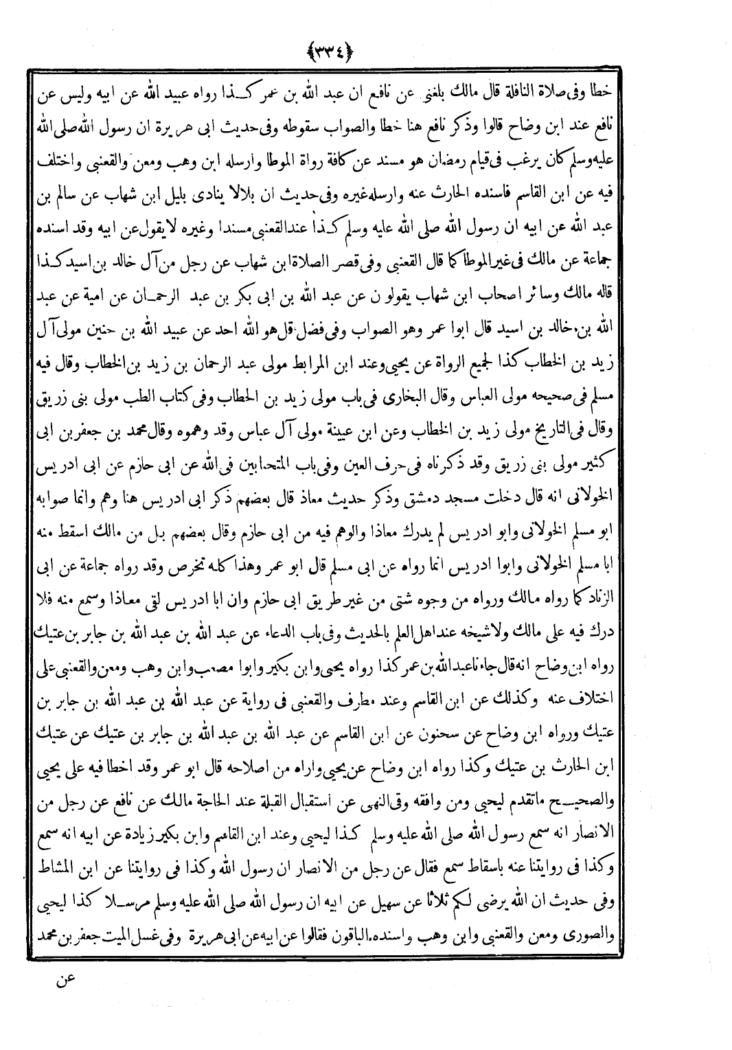خطأ وَفِي صَلَاة النَّافِلَة قَالَ مَالك بَلغنِي عَن نَافِع أَن عبد الله بن عمر كَذَا رَوَاهُ عبيد الله عَن أَبِيه وَلَيْسَ عَن نَافِع عِنْد ابْن وضاح قَالُوا وَذكر نَافِع هُنَا خطأ وَالصَّوَاب سُقُوطه وَفِي حَدِيث أبي هُرَيْرَة أَن رَسُول الله (صلى الله عَلَيْهِ وَسلم) كَانَ يرغب فِي قيام رَمَضَان هُوَ مُسْند عَن كَافَّة رُوَاة الْمُوَطَّأ وأرسله ابْن وهب ومعن والقعنبي وَاخْتلف فِيهِ عَن ابْن الْقَاسِم فأسنده الْحَارِث عَنهُ وأرسله غَيره وَفِي حَدِيث أَن بِلَالًا يُنَادي بلَيْل ابْن شهَاب عَن سَالم بن عبد الله عَن أَبِيه أَن رَسُول الله (صلى الله عَلَيْهِ وَسلم) كَذَا عِنْد القعْنبِي مُسْندًا وَغَيره لَا يَقُول عَن أَبِيه وَقد أسْندهُ جمَاعَة عَن مَالك فِي غير الْمُوَطَّأ كَمَا قَالَ القعْنبِي وَفِي قصر الصَّلَاة ابْن شهَاب عَن رجل من آل خَالِد بن أسيد كَذَا قَالَه مَالك وَسَائِر أَصْحَاب ابْن شهَاب يَقُولُونَ عَن عبد الله بن أبي بكر بن عبد الرَّحْمَن عَن أُميَّة عَن عبد الله بن خَالِد بن أسيد قَالَ أَبُو عمر وَهُوَ الصَّوَاب وَفِي فضل قل هُوَ الله أحد عَن عبيد الله بن حنين مولى آل زيد بن الْخطاب كَذَا لجَمِيع الروَاة عَن يحيى وَعند ابْن المرابط مولى عبد الرَّحْمَن بن زيد بن الْخطاب وَقَالَ فِيهِ مُسلم فِي صَحِيحه مولى الْعَبَّاس وَقَالَ البُخَارِيّ فِي بَاب مولى زيد بن الْحطاب وَفِي كتاب الطِّبّ مولى بني زُرَيْق وَقَالَ فِي التَّارِيخ مولى زيد بن الْخطاب وَعَن ابْن عُيَيْنَة مولى آل عَبَّاس وَقد وهموه وَقَالَ مُحَمَّد بن جَعْفَر بن أبي كثير مولى بني زُرَيْق وَقد ذَكرْنَاهُ فِي حرف الْعين وَفِي بَاب المتحابين فِي الله عَن أبي حَازِم عَن أبي إِدْرِيس الْخَولَانِيّ أَنه قَالَ دخلت مَسْجِد دمشق وَذكر حَدِيث معَاذ قَالَ بَعضهم ذكر أبي إِدْرِيس هُنَا وهم وَإِنَّمَا صَوَابه أَبُو مُسلم الْخَولَانِيّ وَأَبُو إِدْرِيس لم يدْرك معَاذًا وَالوهم فِيهِ من أبي حَازِم وَقَالَ بَعضهم بل من مَالك اسقط مِنْهُ أَبَا مُسلم الْخَولَانِيّ وَأَبُو ادريس إِنَّمَا رَوَاهُ عَن أبي مُسلم قَالَ أَبُو عمر وَهَذَا كُله تخرص وَقد رَوَاهُ جمَاعَة عَن أبي الزِّنَاد كَمَا رَوَاهُ مَالك وَرَوَاهُ من وُجُوه شَتَّى من غير طَرِيق أبي حَازِم وَإِن أَبَا إِدْرِيس لَقِي معَاذًا وَسمع مِنْهُ فَلَا دَرك فِيهِ على مَالك وَلَا شَيْخه عِنْد أهل الْعلم بِالْحَدِيثِ وَفِي بَاب الدُّعَاء عَن عبد الله بن عبد الله بن جَابر بن عتِيك رَوَاهُ ابْن وضاح أَنه قَالَ جَاءَنَا عبد الله بن عمر كَذَا رَوَاهُ يحيى وَابْن بكير وَأَبُو مُصعب وَابْن وهب ومعن والقعنبي على اخْتِلَاف عَنهُ وَكَذَلِكَ عَن ابْن الْقَاسِم وَعند مطرف والقعنبي فِي رِوَايَة عَن عبد الله بن عبد الله بن جَابر بن عتِيك وَرَوَاهُ ابْن وضاح عَن سَحْنُون عَن ابْن الْقَاسِم عَن عبد الله بن عبد الله بن جَابر بن عتِيك عَن عتِيك ابْن الْحَارِث بن عتِيك وَكَذَا رَوَاهُ ابْن وضاح عَن يحيى وَأرَاهُ من إِصْلَاحه قَالَ أَبُو عمر وَقد أَخطَأ فِيهِ على يحيى وَالصَّحِيح مَا تقدم ليحيى وَمن وَافقه وَفِي النَّهْي عَن اسْتِقْبَال الْقبْلَة عِنْد الْحَاجة مَالك عَن نَافِع عَن رجل من الْأَنْصَار أَنه سمع رَسُول الله (صلى الله عَلَيْهِ وَسلم) كَذَا ليحيى وَعند ابْن الْقَاسِم وَابْن بكير زِيَادَة عَن أَبِيه أَنه سمع وَكَذَا فِي روايتنا عَنهُ بِإِسْقَاط سمع فَقَالَ عَن رجل من الْأَنْصَار أَن رَسُول الله وَكَذَا فِي روايتنا عَن ابْن المشاط وَفِي حَدِيث أَن الله يرضى لكم ثَلَاثًا عَن سُهَيْل عَن أَبِيه أَن رَسُول الله (صلى الله عَلَيْهِ وَسلم) مُرْسلا كَذَا ليحيى والصورى ومعن والقعنبي وَابْن وهب وأسنده الْبَاقُونَ فَقَالُوا عَن أَبِيه عَن أبي هُرَيْرَة وَفِي غسل الْمَيِّت جَعْفَر بن مُحَمَّد